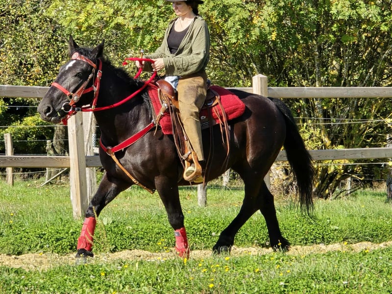Jument noire – sociable et conviviale Âge : 3,5 ans Taille : environ 1,53 m Prix : 6500,- Vétérinaire disponible Elle est : – douce et fiable au quotidien ainsi que sous la selle – très attachée aux humains et câline – équilibrée et calme malgré son jeune âge – un excellent cheval pour toute la famille – avec son caractère, également intéressante pour le domaine de l'équitation thérapeutique Parfait pour : Familles, cavaliers de loisir ou établissements à la recherche d'un cheval amical et coopératif, qui aime le contact humain. Nos chevaux : – régulièrement vermifugés – suivis par le maréchal-ferrant et l'ostéopathe Magasin à la ferme : Selles western, brides, accessoires Transport et accessoires organisés à prix réduit sur demande Notre service : ✅ Droit de retour de 3 mois ✅ Essai : 35 €, chaque cheval supplémentaire 25 € (déduit lors de l'achat le même jour) ✅ Remise immédiate de 100 € pour enlèvement/transport le même jour ✅ Conseil personnel et honnête Pour les demandes, veuillez appeler uniquement : 0171 – 4001968 Disponible tous les jours de 8h à 20h ⚠️ Pas d'e-mail ou WhatsApp ⚠️ Toutes les informations sans garantie