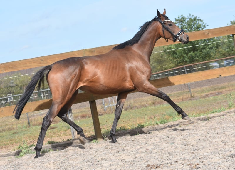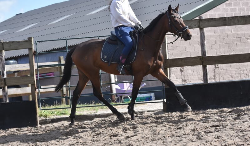 Hier is Yvy, een prachtige jonge dame van 3,5 jaar oud met een stokmaat van ca. 1.55m. Haar afstamming is Doyen x Little Nugget. Ze heeft een chique, elegante bouw en weet zeker de aandacht te trekken zodra je de stallen binnenloopt. Ze heeft een ontzettend lief en eerlijk voorkomen. Ivy heeft 3 fantastische gangen en is daarmee geschikt voor meerdere takken van de sport. Ondanks haar jonge leeftijd pakt Yvy het werk hier heel goed op. Ze werkt graag samen met haar ruiter en doet haar best om alles zo goed mogelijk te begrijpen. Momenteel wordt ze bij ons dressuurmatig en recreatief doorgereden en laat ze daarbij een fijne instelling en veel potentie zien. Ze is geheel vrij van gebreken. In bezit van zeer recent keuringsrapport inclusief bloedafname. Prijs 3950- incl. merkzadel en dekje