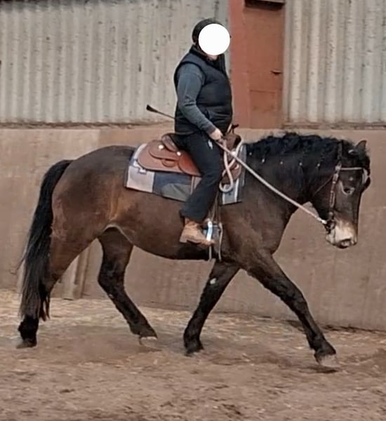 Western/Workin E .Curvy Model Stute / Muss leider die Köfferchen packen und sucht ein schönes Zuhause in dem man sie auch zuschätzen weiß Der aktuelle Standort ist in Brandenburg /Oberhavel Bitte bei ernsthaftem Interesse an unserem Curvy Model den Anzeigentext sorgfälg durchlesen in dem das Pferd so gut wie möglich beschrieben wird ich werde gerne Fragen zu ihr beantworten bei Anfrage und ernsthaftem K.aufnteresse aber das meiste steht hoffentlich schon im Text . Ja es gibt auch weitere Fotos und auch Videos von ihr die ich auch verschicke auf Anfrage aber bitte ebenfalls nur bei ernsthaftem interesse an ihr oder vereinbarung eines Besichtigungstermins für sie. Daher bitte keine Foto und Videosammler . Wir leiden nicht an chronischer Langeweile also bitte keine Time Waster. Daher bitte ich ebenfalls um Verständnis das ich bei Anfragen nicht immer gleich ans Handy springen kann .Ich melde mich aber zurück .Bitte auch keine Anfragen auf Raten ,Tausch oder Inzahlungnahme von was auch immer . Mittlerweile sollte jeder Pferdemensch wissen das eine Pferdeausbildung recht kostspielig ist und das der Preis bei zunehmendem Ausbildungsstand eher steigt . So nun zum Pferdchen. Unser Curvy Model ist ein wirklich propperes Mädchen 4j und hat ein Stockmaß von ca 156cm. Der Grund weswegen sie packen muss . Man kann leider nicht alle behalten . Sie ist ein Grundehrliches freundliches aufgeschlossenes Pferd. Beißt nicht tritt nicht spuckt nicht . Absolut keine Zicke auch nicht in der Rosse . Sie ist dem Alter entsprechend in allen drei Grundgangarten in Anlehnung an Western/ oder working Equitation geritten . Meist mit Westernsattel und Transe (die nicht mit dazu gegeben werden ) .Sie kennt aber auch english Equipment (wird auch nicht mit dazu gegeben ). Sie geht gut in Anlehnung und arbeitet willig mit . Sie ist in der Regel ruhigen Geistes aber nicht tot . Die Bremse funktiniert gut sie stoppt aus allen drei Grundgangarten(Kein sliding Stop manöver) Sie kennt beginnend Tempiunterschiede im Trab extended jog / jog /slow jog . läßt sich Rückwärtsrichten läuft über Stangen und auch über eine Träiningsbrücke. Sie kennt auch ausreiten mit Begleitpferd. Sie ist nicht absolut schreckfrei auf die Welt gekommen da sie ein junges Pferd ist ist aber keine Hysteriebirne wenn sie was grault dann zuckt sie auch mal zusammen brettert aber nicht hirnlos davon sondern läßt sich in der Regel gut überzeugen sich das Objekt des Horrors näher anzusehen . Sie kennt auch Hängerfahren ebenalls mit Begleitpferd. Sie ist eine Barhufige Offenstallbewohnerin die aber auch eine Box von innen kennt und eher rangniedrig ist . Kein Zankapfel . Das Motto ist ,es ist gesünder etwaiigen Streitigkeiten aus dem Weg zu gehen. Sie ist eher der Kuschelbär und möchte freundlich und fair behandelt werden Sie hat ein wirklich solides stabiles Fundament . Salopp gesagt sie ist eine Pummelfee für Pummelfeen und natürlich Elflein gleichwohl geignet und deckt auch größere Reiter gut ab. Es sind soweit keine Krankheiten bekannt aber es besteht nätürlich die Möglichkeit eine Ankaufsuntersung auf eigene kosten machen zu lassen. Sie wird ca 3-4 X die Woche gearbeitet in alters entsprechenden kurzzeit Einheiten um das Pferd nicht zu vergrämen . Daher ist sie keine Marathonritte gewohnt und steht auch nicht in der Kondition eines Marathonläufers . Sie wird somit gerne vorgeritten und ein kurzes probereiten ist auch möglich aber keinesfalls Stundenlang . Wir bitten dafür um Verständnis.