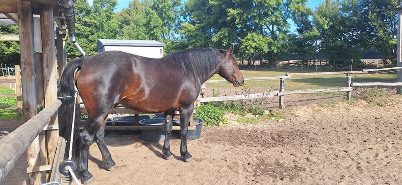 Wir (2 Freundinnin), suchen auf diesem Weg für unsere wunderhübsche Stute ein neues Zuhause. Als Wiedereinsteiger haben wir uns, unseren Wunsch vom eigenen Pferd erfüllt. Nun stellen wir leider nach vielen Trainingseinheiten schweren Herzens fest, daß unser Wissen und Können für diese tolle Stute nicht ausreicht. Da wir mit ihr keine gute Verbindung aufbauen können und Wir ehrlicherweise ziemlich blauäugig an ein Jungpferd gegangen sind, suchen wir nun jemanden mit mehr Erfahrung, Sie ist kein Anfängerpferd. Desweiteren fing sie hier an hinten zu lahmen. Dies haben wir tierärztlich inkl. Röntgen abklären lassen, ohne Befund. Die verschrieben Ruhe tat ihr gut sodass Sie momentan lahmfrei läuft und seither wieder leicht mit ihr gearbeitet wird. Eine AKU kann selbstverständlich auf eigene Kosten durchgeführt werden. Wir wünschen uns für unsere Stute ein tolles neues Zuhause, wo ihr gerecht werden kann. Bei Interesse oder für weitere Informationen stehen wir gerne zur Verfügung. Ein Kennenlernen vor Ort ist selbstverständlich möglich! Kontaktieren Sie uns gerne, um mehr über diese bildhübsche Stute zu erfahren!