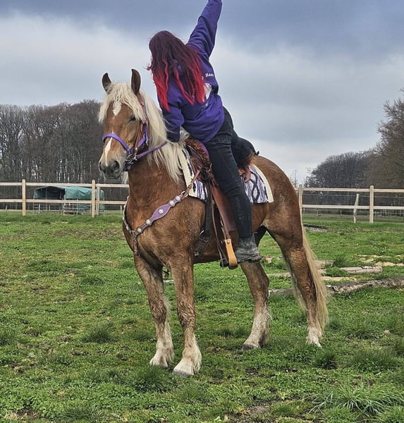 Ricarda Haas is here: Reitershop Haas. trdoepsSon0c8li6g7hm.4l58u2m9394769c4a4mu 96f2hnt02M5u0mt617 · Linkenbach · Shared publicly Baroque Chestnut Mare With E-Pass and AKU documentation. * 5 years old * Approx. 1.56 m (about 16.1 hh) * €6,500 🥕🥕 ✔️ Friendly and sociable nature – ideal for leisure riding, therapy, and riding school use ✔️ Well-behaved in handling – relaxed when grooming, leading, and saddling ✔️ A real eye-catcher *Our ponies & horses:* All our animals are regularly dewormed, introduced to the farrier, and receive osteopathic treatment if needed. We place great importance on species-appropriate husbandry and fair interaction. *Additional information:* We want to make buying your dream horse as easy as possible! We can gladly organize accessories and transportation. Our farm shop also offers a wide selection of used Western saddles from premium brands, as well as other accessories like bridles, halters, and more. *Our service for you:* To get to know a horse in peace, we offer *trial rides for €35*. If you wish to test more horses, each additional ride costs only €25. You can ride, be led, go for a walk, or simply spend time with her. If you buy on the same day, this fee will of course not be charged. *Special offers for our customers:* - 💰 Discount for immediate pickup or same-day transport: • Price category 1: €100 off • Price category 2 (from €5,000): €250 off - We accompany you with transparent trial rides throughout the entire sales process to help you find the perfect horse. *Important notes:* - All images and image rights belong exclusively to us; external use is not permitted. - As this is a living animal, our descriptions are based on the impressions of the caretakers and do not constitute guaranteed properties.