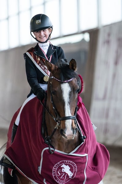 Romeo to koń, który łączy w sobie sportową dojrzałość, energię i ogromne serce do pracy. Nie wymaga zachęcania – chętnie idzie do przodu, utrzymuje rytm i reaguje na delikatne pomoce. Jest koniem, który pracuje z zaangażowaniem i daje z siebie wszystko – zarówno w treningu, jak i na czworoboku czy parkurze. To koń o wyjątkowej wszechstronności – startował z nastolatkami, zdobywając liczne sukcesy w skokach (np. 1. miejsce w klasie L) , a obecnie z powodzeniem trenuje i startuje z 11-letnią amazonką, udowadniając swoje zrównoważenie, cierpliwość i gotowość do współpracy z młodszym jeźdźcem. Ostatnie osiągnięcia: 1. miejsce – Mistrzostwa Śląska w ujeżdżeniu (kat. młodziki) 1. miejsce – zawody skokowe klasy LL Brązowa Odznaka Jeździecka uzyskana na Romeo Te wyniki najlepiej potwierdzają jego stabilny temperament, doświadczenie i sportową wartość – Romeo to koń, który potrafi dostosować się do umiejętności jeźdźca, zapewniając zarówno bezpieczeństwo, jak i realne możliwości rozwoju. Dlaczego warto: - regularnie trenowany, w doskonałej kondycji, - chętny do pracy, bez narowów, łatwy w obsłudze, - sprawdzony w ujeżdżeniu i skokach, - doskonały dla młodego zawodnika lub ambitnego amatora, - koń z klasą, doświadczeniem i wyjątkowym charakterem. Romeo to nie tylko koń – to prawdziwy partner, który inspiruje, uczy i daje ogrom satysfakcji z każdej jazdy. Gotowy, by rozpocząć nowy rozdział z kimś, kto doceni jego doświadczenie i serce do pracy. Lokalizacja: Pensjonat dla koni Kumminui w Łazach k. Bielska-Białej. Więcej filmów i zdjęć dostępnych na życzenie.