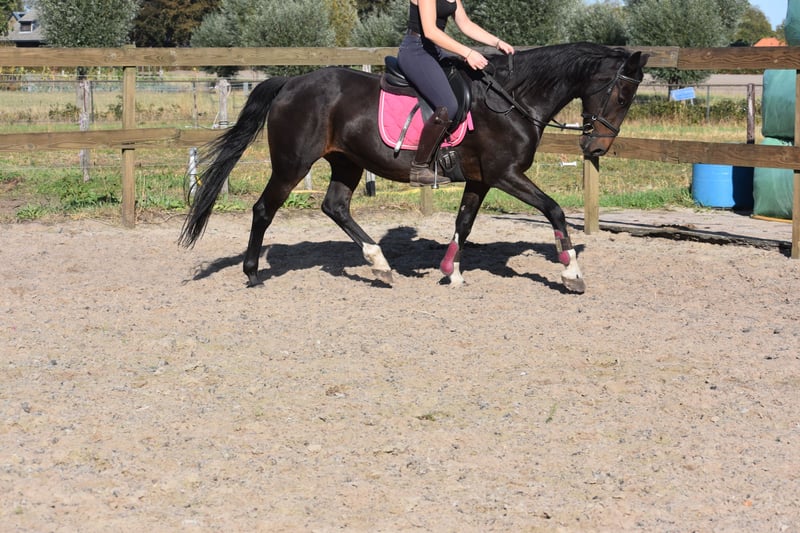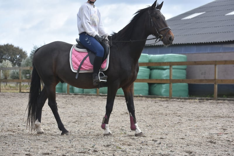 Farmer’s Pride Jester is the pride of his breeder, he is a horse with a golden character! He is approximately 156 cm tall and has already gained experience in a riding school at a care facility. Jester comes with a recent inspection report including a blood sample, which confirms his approval for sports! He has a complete pedigree of Rayo X Perrybridge Touch and Go x Joey. He is suitable for a less advanced rider, but he offers the experienced rider more than enough challenge to achieve a lot! Suitable for both sports and recreational riding. Price 3950,- including a branded saddle and saddle pad.