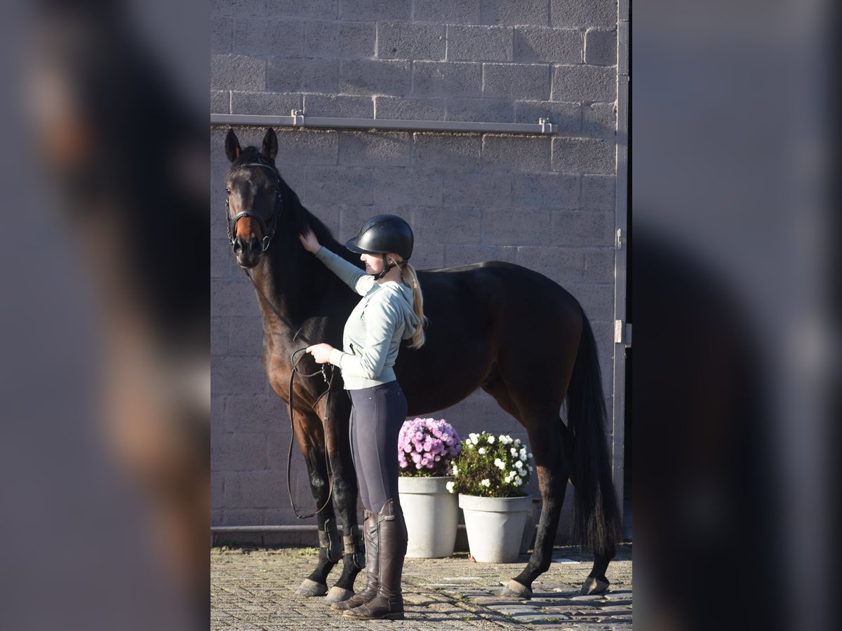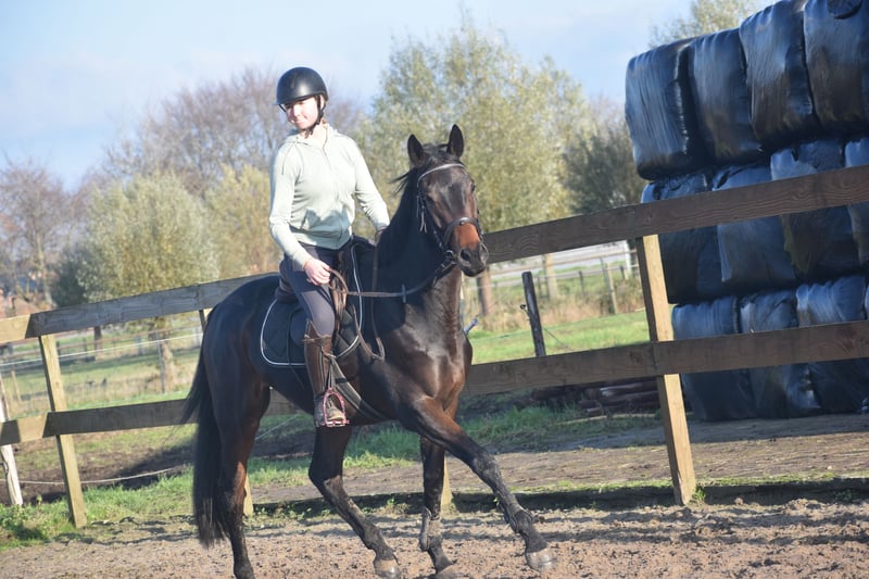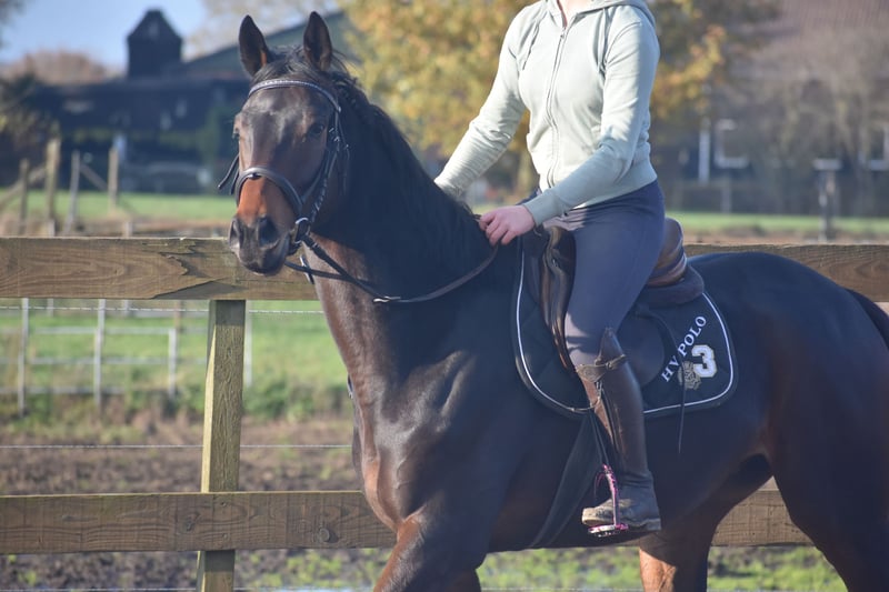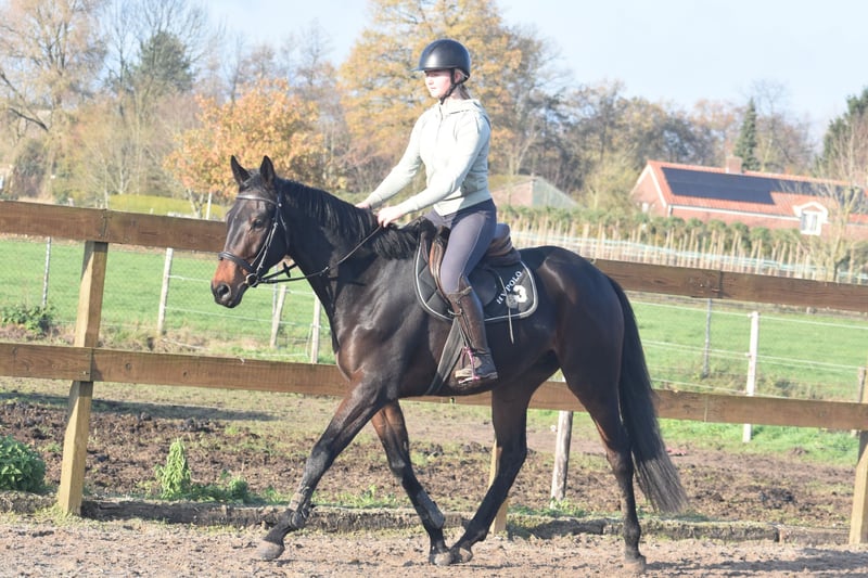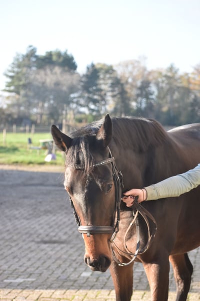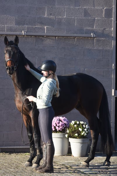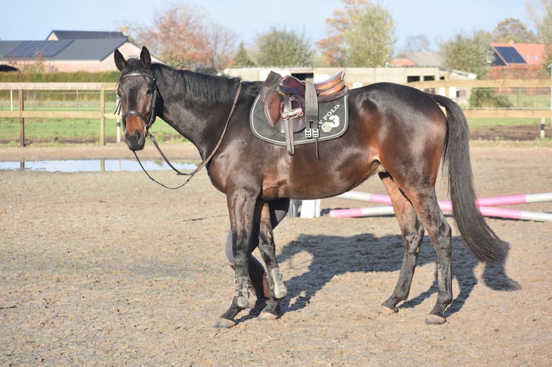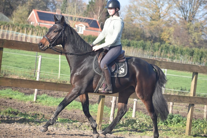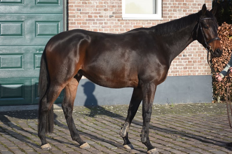 Deze geboren Fransman heet Daytona Diamond. Zijn vorig baasje gunde hem ons . Het is werkelijk een plaatje en dat van binnen en van buiten! Het is een geboren galopeur. Hij heeft nooit gekoerst en is nooit op een renbaan geweest. Hij heeft 3 zeer ruime, gedragen gangen. Is voor meerdere takken van de sport geschikt. Ons inziens ook braaf genoeg voor de recreatie! We konden bij binnenkomst meteen op hem wegrijden. hij is 4 jaar oud en ca 165 m hoog en heeft een volle stamboom van : Cloth of Stars x Montjeu x Eagle Eyed. Diamond is wat je noemt een bloedmooi paradepaardje die wacht op een lieve baas waar hij een geweldige toekomst mee gaat hebben! Zijn vorig baasje wil graag contact houden met een nieuwe eigenaar en ze schrijft : “Diamond is Leergierig, lief, een knuffelpaard, mens+ paardgericht, sociaal en braaf en hij houdt van poetsen en aandacht. De reden van verkoop is dat 4 paarden toch te veel zijn. Hij verdiend meer aandacht en rijden.” Hij is met buitenrijden hier superbraaf . Hij gaat bij ons in zijn eentje het erf af en hup de straat op , heel nuchter . Is onlangs door de tandarts behandeld, in bezit van een recent rapport. Prijs € 6450,- incl. merkzadel en compleet hoofdstel