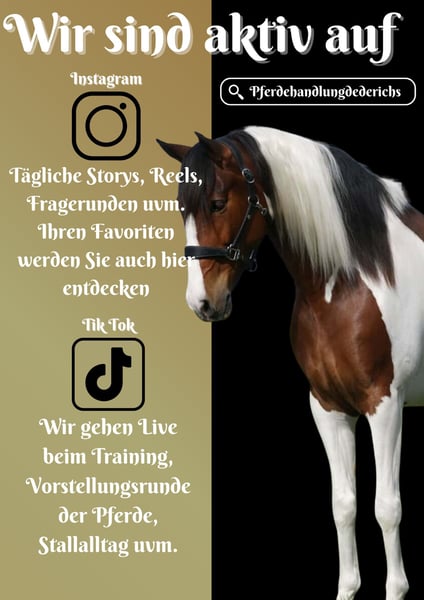 Lolo is a 5-year-old, approximately 16.1 hh, pinto gelding. *Lolo* is a stunning, expressive gelding with an excellent character. He is well-trained and very rideable, making him incredibly easy to handle. He has very good gaits, is light in the contact, and a pleasure to sit. He is completely honest and super, super cool. Lolo has no issues with unfamiliar environments, traffic, noise, and enjoys crossing water. He is uncomplicated both alone and in a group in the terrain. He also enjoys jumping and is happy to hop over a log. He provides a secure feeling even for nervous riders. Lolo is also suitable for teenagers. He is an absolute dream horse. !!! BE SURE TO WATCH HIS VIDEO !!! In handling, he is very people-oriented, affectionate, and uncomplicated. This stunning all-rounder not only looks great but also impresses with a wonderful character. A current video can be found in the listing or at the following link: https://www.youtube.com/watch?v=Qr8ezEHAnC0 Horse Dealership Dederichs – Your Partner for Horse Buying Contact & Availability: Please inquire exclusively by phone at 0173/9792139 Monday – Friday: 09:00 – 18:00 Saturday: 09:00 – 15:00 Sunday: Closed Follow us on social media! Experience our daily work with sale horses on Instagram, TikTok & Facebook at Pferdehandlung Dederichs Discount: Receive 5%–10% off when you take your new dream horse immediately Trial Riding & Demonstration: • Trial ride: €40 per horse (up to 2 riders), fee credited upon purchase • Holidays: Trial ride €50 • Demonstration by our trainers: €30 per horse (pre-riding, ground work, etc.) Pre-Purchase Examination & Transport: • Many of our horses already have a pre-purchase exam (AKU) • You are welcome to bring your own veterinarian • We can arrange an examination for you • We also assist with transportation to your new home Other Sale Horses: We have additional horses available in our stable that are not yet listed online. If your dream horse is not yet among them, do not hesitate to contact us. Important Notes: • Estimated height measurements are approximate and not precisely measured • All descriptions are subjective assessments by the seller and do not constitute guaranteed properties