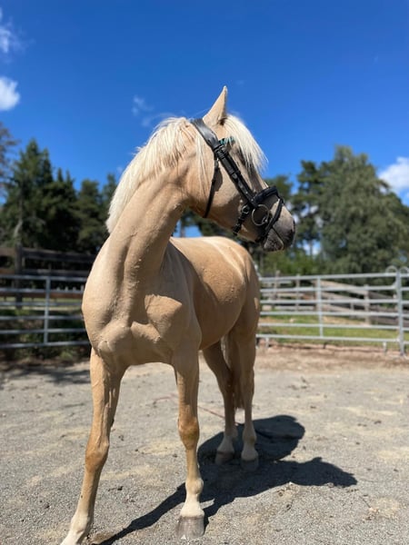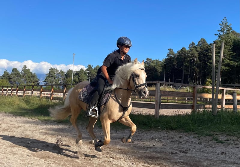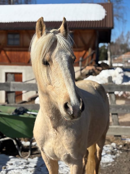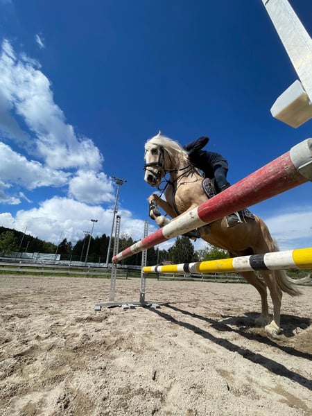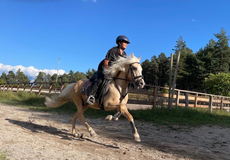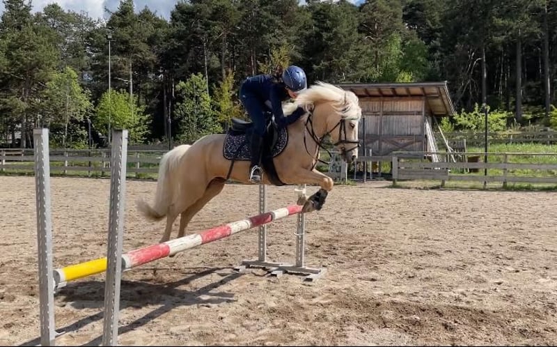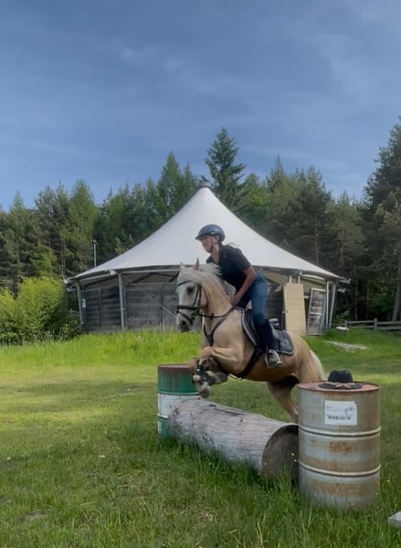 Golden Sky ist ein echtes Goldstück für Reiter mit Erfahrung Er ist ein Allrounder bis zur Springklasse E – egal ob Dressur, Gelände oder Springen, er macht alles mit und gibt immer 100%. Sein Charakter? Sehr herzhaft und liebevoll. Er sucht die Nähe, freut sich über Streicheleinheiten und hat ein riesiges Herz. Gleichzeitig hat er aber auch einen starken Charakter und weiß genau was er will. Er testet gerne mal und braucht deshalb eine klare, faire Hand. Temperament hat er reichlich. Unter dem Sattel ist er fleißig und arbeietet immer gerne mit. Seine Konzentration ist zu immer zu 100% beim Reiter. Kurz gesagt: Ein Pony mit viel Herz, Temperament und einem starken Willen. Nichts für Anfänger, aber für den passenden Reiter ein absoluter Traum-Allrounder.