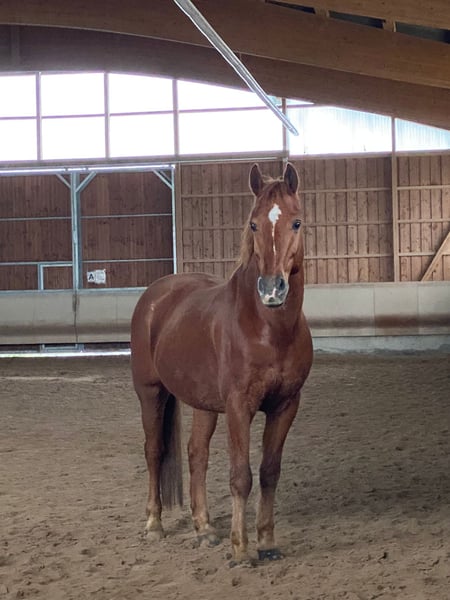 Luca – braver Allrounder sucht neues Zuhause Schweren Herzens verkaufen wir unseren lieben Wallach Luca, geboren 2010 (wird im Oktober 16 Jahre alt), ca. 1,58m. Luca ist ein zuverlässiger und ausgeglichener Partner, sowohl im täglichen Training als auch im Gelände. Er ist absolut brav im Umgang, kennt Kinder, Hunde und landwirtschaftliche Fahrzeuge und zeigt sich stets freundlich und kooperativ. Im Gelände ist er sicher und entspannt unterwegs – alleine wie auch in der Gruppe. Auf dem Turnier wurde Luca erfolgreich auf E-Niveau in der Dressur sowie im Springen vorgestellt. Er ist motiviert bei der Arbeit und möchte seinem Reiter gefallen. Aufgrund einer früheren Sehnenverletzung sollte er jedoch nicht mehr höher im Springsport eingesetzt werden. Für den Freizeitbereich, leichte Dressurarbeit oder kleinere Springaufgaben ist er weiterhin gut geeignet. Wir wünschen uns für Luca ein liebevolles Zuhause, in dem er weiter gefördert und geschätzt wird. Der Verkauf erfolgt ausschließlich, weil meine Tochter sich aufgrund der Schule zeitlich nicht mehr ausreichend um drei Pferde kümmern kann – es fällt uns daher nicht leicht. Bei ernsthaftem Interesse freuen wir uns über eine Nachricht und ein persönliches Kennenlernen.