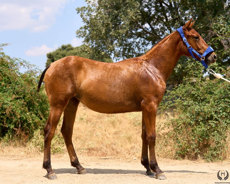 🐴 Retama is a spectacular CDE filly, with a dark bay coat and black points, born on 10 January 2025. Very American type: powerful, muscular hindquarters, short back, cylindrical body, fine limbs and a triangular head with a strong jaw. 💪 Compact, athletic and perfectly built for ranch work, cattle handling, long mountain rides or endless trail rides. ♀️ Dam: CB SOME LIKE IT HOT (Appaloosa APHC) – 100% functional working bloodline. Daughter of the legendary BOGIEPLATED JAC, one of the best functional Appaloosas in Europe, with an outstanding record: 🏆 French Reining Champion (2004, 2005, 2008, 2010) 🏆 European Maturity Reining Champion (2008) 🏆 French GET OF SIRE Champion (2010) 🏅 International ApHC USA Top Ten (multiple years) 🥇 Gold and silver medals at European and World Championships 📜 ROM Junior Reining and Halter ♂️ Sire: Gallo-Spirit CDE, our recognised stallion, adding beauty, nobility, refinement and great rideability. 📄 Purchase options: 1️⃣ Sale with official ANCADES breeding certificate (registration by the buyer). 2️⃣ Sale with official ANCADES papers. 🩺 Health guaranteed: Any veterinary examination accepted. 🚛 National and international transport with specialised companies. 📲 Contact: 🟢 WhatsApp: +34 639 522 420 🔴 Instagram: @yeguadamontealegre 📸 @almarevisual