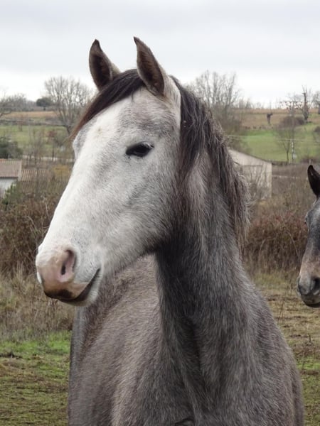 For sale: 2.5-year-old Lusitano filly named TRIANA AC, with a roan coat. Born on May 23, 2021. She is the daughter of the Lusitano stallion GRATO, a Grand Prix level competitor participating in both national and international competitions (selected nationally in the juvenile category). Her dam is a chestnut CDE mare named GANADERA. Well-handled and gentle. Located in Las Uces, Salamanca. For inquiries, contact ACdiversity Stud at +34 607 306 608.