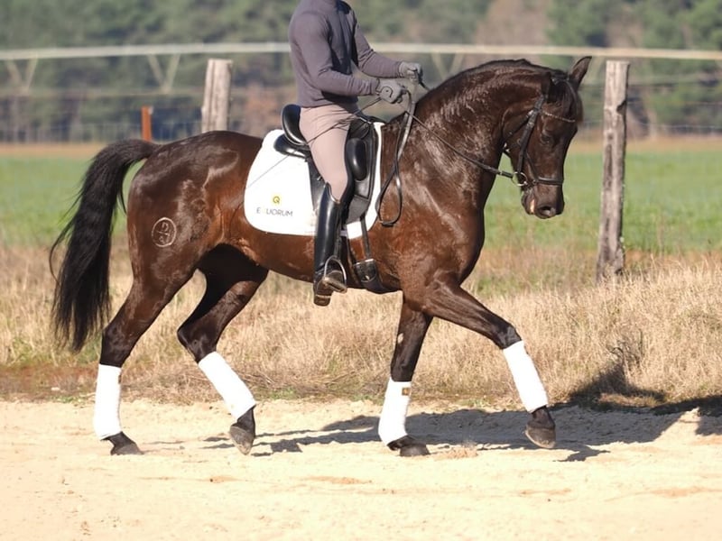 Lerne unsere CDE-Stute kennen! Diese beeindruckende Stute mit einer Größe von 1,62 m, geboren 2019 und pirofrei, ist ein wahres Juwel in der Dressurwelt. Ihr starker Körperbau und ihr fortgeschrittenes Niveau machen sie zur idealen Partnerin für jeden Reiter, der in Wettkämpfen glänzen möchte. Sie beherrscht fliegende Wechsel in Serie, Pirouetten, Piaffe und Seitengänge im Galopp mit Eleganz. Mit ihrem dunkelbraunen, fast schwarzen Fell und ihrem freundlichen, anpassungsfähigen Charakter ist sie perfekt sowohl für Amateure als auch für Profis. Sie kann sogar problemlos mit einer Wassertrense geritten werden.