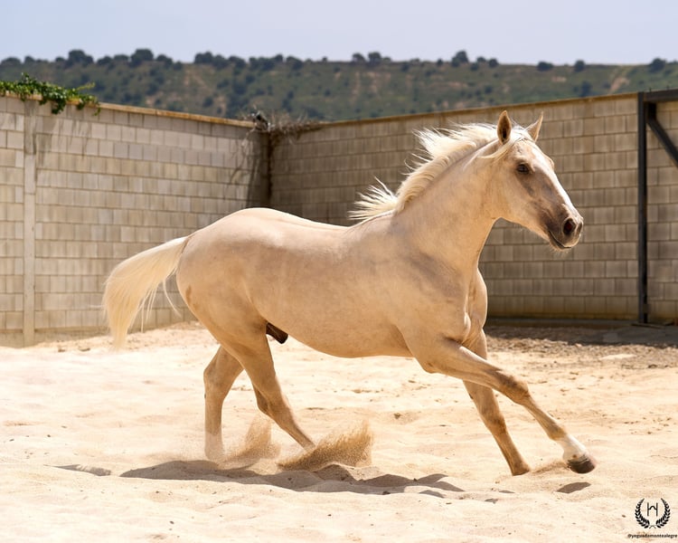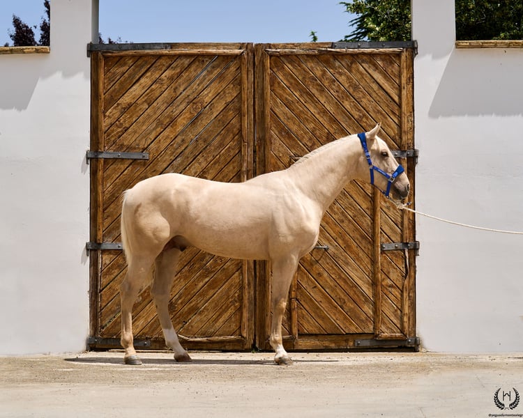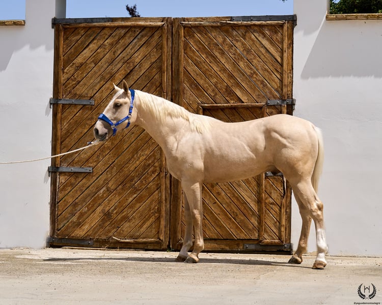 🌞 Amazónico Monte Alegre — Elegance, Genetics and Functionality in One Horse 🌞 Looking for a horse that has it all? 💫 Amazónico Monte Alegre is the perfect fusion of beauty, athletic character and elite genetics. 🐎 📅 14/04/2023 – 1.68 m – Gelding 📘 CDE (ANCADES) ▫️ Training level: Well-handled young horse, working on the lunge in all three gaits and on both reins. Excellent stable manners: stands for farrier, loads and unloads from trailer without difficulty. ▫️ Striking conformation: Current height 1.68 m; at full maturity around 6 years he will reach 1.70 m. His brilliant metallic palomino coat, broad blaze with continuous stripe and two white socks make him a true visual standout. Athletic, well-proportioned build: solid limbs, strong back, prominent withers, sloping shoulders and powerful hindquarters. Ideal for both show jumping and dressage. ▫️ Premium genetics: Son of QUEST OF GOLD IE (palomino CDE from the prestigious “Las Regueras” stud) and grandson of the legendary Quatercream IE x Quarterback. Top Central European dilute bloodlines. His maternal granddam adds the softness and elegance of the Polish warmblood EVA x MC Jonnas, from whom he inherits his unique ivory-toned palomino coat. His genetic coat as a stallion is “ee _ _ CRcr”, meaning that with chestnut mares or Cream dilution he can produce Palomino, Cremello, Perlino, Buckskin. He also shows a distinctive Bend-Or marking. ▫️ Exemplary behaviour: Entire horse, gentle and well balanced. Travels well by truck or van, integrates easily into new groups and is respectful in daily handling. ▫️ Functional versatility: Big, elastic and powerful gaits. Perfect for classical dressage, show jumping or leisure riding. A complete, harmonious horse with true sporting spirit. ▫️ Health guaranteed: Any veterinary examination accepted. Transparency and trust are our foundations. 📦 National and international transport available. Request a quotation with no obligation! 📲 Contact: 🟢 WhatsApp: +34 639 522 420 🔴 Instagram: @yeguadamontealegre 📸 @almarevisual