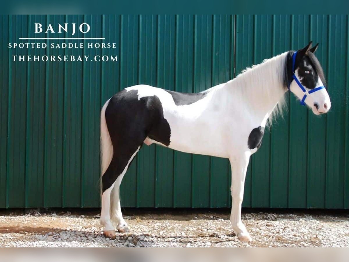 Let me introduce you to Banjo. Banjo is a gorgeous 4-year-old, 15.2-hand spotted saddle horse gelding. Banjo is by far a barn favorite around here with his kind heart and gentle soul. Banjo has a smooth, natural gait that everyone longs to find, making for a fun, enjoyable ride! Banjo has been ridden in rough terrain deep in the mountains for many miles and loves taking care of his rider! Banjo rides in the front like a brave soldier, the middle of the pack, or in the back, slow and easy! Banjo doesn’t mind wildlife, cars, or water; he takes it all in stride. Banjo will stand quietly tied all day without a fuss, loads like a gentleman, and hauls easily. No matter where Banjo sees you, he is the first one to come to you for attention; he is most definitely a lover with an amazing personality. If you’re looking for a beautiful, quiet, sweet, loving personality with a smooth gait to enjoy coming to check out Banjo!! Banjo is one you can’t help but fall in love with!