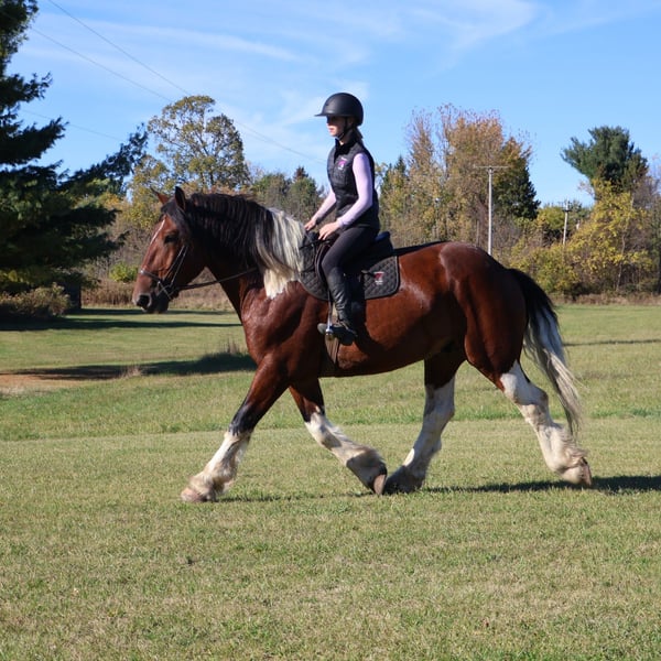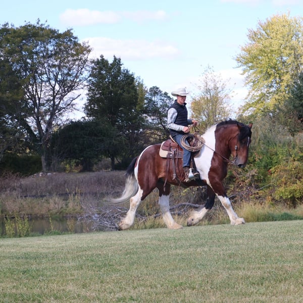 "AVAILABLE ON ONLINE HORSE AUCTION AT www DOT MagicHorseAuction DOT com BIDDING OPEN NOW thru TUESDAY | MARCH 3RD! BUY IT NOW AVAILABLE! *Final price will be determined on auction site* CONSIGNOR CONTACT INFO:ELLESSEE SCHWARTZ #248-390-6831 LOCATION:Howell, MI" We would love to introduce Blackstones Charles. This 6 year old 17hh spotted draft gelding has it all. From his captivating personality to his stunning conformation and painted color. Charles lacks nothing. Charles is the type of horse who wants to be your best friend. He plays well with all the others outside and will catch you when you walk to the pasture. Charles is extremely well broke. He walk, trots, canters and stops on a dime. His transitions are flawless both upward and down. Charles steers off seat and leg so well you don’t even need a bridle. He will gladly take a bit, snaffle or shank he’s not fussy or just pull the bridle right off and he steers with all leg ques. He builds you up every ride and makes you want to get on. Charles has loads of experience out on the trails from the mountains of MO to the open fields of MI he’s seen it. Water, deep woods, roads, wildlife no problem. Charles has been ridden in groups of 40 horses. He will take any place you ask in the group and is not one to get worked up. He’s also been out alone. He’s been driven single and double. He has worked in busy city's, in traffic and crowds of people. He stands to harness. He stands at stop signs and he will stand for passengers to get on and off the carriage. He has a great amount of training in the arena as well. He will easily steep into the lope, and can canter small circles on both leads. Charles is very balanced and light on his feet. He’s completed our desensitizing program. Pool noodles, tarps and bridges are all no problem for him. He is a very brave horse. Charles is the horse to teach you the ropes, the one you can depend on and he’s loaded with personality. He is sure to win you over with one glance into his big soft eyes! Charles lives in Howell, MI