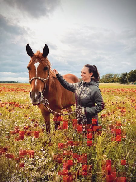 Hello, Let me introduce myself briefly. My name is Melissa, and I am 25 years old. I have been working with horses since I was 9 years old, have received eight years of intensive riding lessons, and hold the basic horse knowledge certificate. I have been living in Eggersdorf, Brandenburg, for the past four years, and since then, I have been searching for the right four-legged partner. I am confident in the saddle, and if I had to categorize my riding level, I would say "advanced beginner." I am not interested in competitions, so I am looking for a recreational riding partner for 1 to 2 times a week, preferably for trail riding. I also enjoy groundwork exercises. I am mobile and have my car available for travel. I have experience with young horses and would consider myself calm and patient. Open and respectful communication is very important to me. Regarding my size and weight, I am 1.60 meters tall and weigh around 50 kg. If you are looking for support for your four-legged friend and are open in your communication, I would be happy to get to know you.