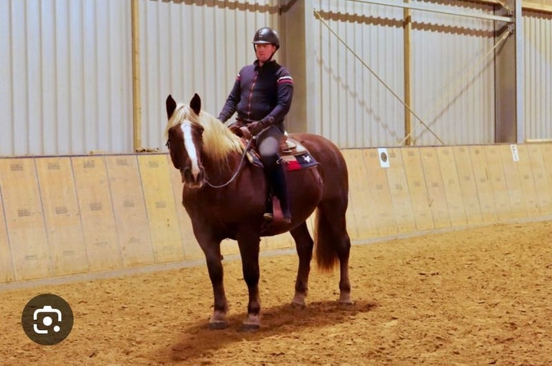 Sympathische Kaltblutstute zu verkaufen! Sie ist das absolute Verlasspferd , immer ruhig und ausgeglichen und der Liebling aller Kinder . Jeder wird sicher aus dem Gelände wieder nach Hause gebracht, egal ob alleine oder in der Gruppe . Autos , Trecker, Züge , schreiende Kinder oder bellende Hunde sind für diese Stute kein Problem. Ihr Zuhause ist das Gelände, auch für absolute Anfänger geeignet! Sie genießt jegliche Aufmerksamkeit, ist brav beim Schmied und beim Verladen . Aktuell trägt sie Vorderbeschlag. Selbstverständlich regelmäßig entwurmt und osteopathisch behandelt. Absolut verträglich , Box und Offenstall gewohnt . Auch nach einer Pause , einfach draufsetzen und losreiten,immer ausgeglichen. Aufgrund von Platzmangel dringend zu verkaufen ,gerne auch mit Zubehör gegen Aufpreis (Sattel und Trense ).