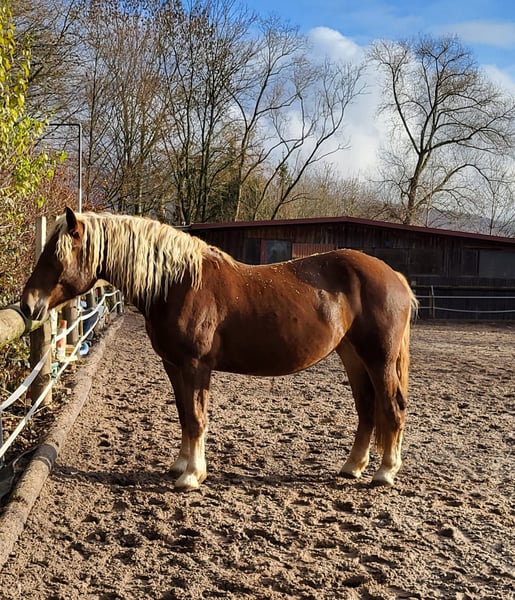 **Verkaufsanzeige: Süddeutsches Kaltblut-Stute, Geburtsjahr 2022** Zum Verkauf steht eine vielversprechende Süddeutsche Kaltblut-Stute, geboren im Jahr 2022. Die elegante Dunkelfuchsstute überzeugt durch ihre beeindruckende Erscheinung und ihr freundliches Wesen. Mit einem Stockmaß von ca. 160 cm bietet sie die typische Größe eines kraftvollen und gut bemuskelten Kaltbluts. Sie kennt Bodenarbeit und Verladen ( ohne Probleme).Sattel kennt sie noch nicht. Sie ist bestens geeignet für den Freizeitbereich und zeichnet sich durch ihre ruhige und gelassene Art aus. Die junge Stute ist gut geritten, zeigt sich im Umgang sehr liebenswert und ist bereits an den Umgang mit Menschen gewöhnt. Aufgrund ihrer robusten Konstitution und ihres ausgeglichenen Charakters ist sie ideal für Reiter, die ein zuverlässiges Freizeitpferd suchen. Diese Süddeutsche Kaltblut-Stute verbindet typische Rassemerkmale mit einem angenehmen Temperament und einer guten Grundausbildung. Sie ist ein echtes Allround-Talent für den Freizeitbereich und wartet nur auf eine/n liebevolle/n Reiter/in, der/die ihre Stärken zu schätzen weiß. Der Hengst ( Papa) steht bei uns ,leider ist die Mutter * nicht mehr unter uns. Beide Elternteile standen bei uns auf dem Hof. Verkauf aus Gesundheitlichen Gründen (Besitzer)