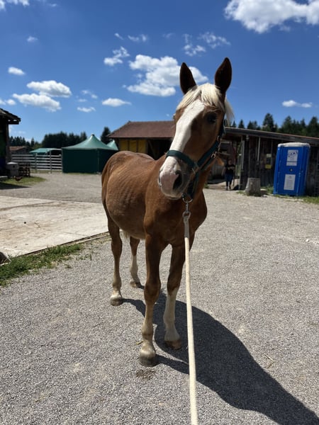 Angus ist ein gut sozialisierter, aufgeweckter Jungwallach mit schönem Charakter. Er wuchs im Familienumfeld auf, kennt Kinder, Kühe, Alpakas und Hühner 🐓. Seit dem 9. Monat steht er bei mir im Offenstall in einer altersgemischten Herde und zeigt dort ein sehr gutes Sozialverhalten. Er geht regelmäßig spazieren, lernt schnell und möchte gefördert werden. Kastriert im Mai 2025, alles problemlos verlaufen. Ich wünsche mir für ihn einen Platz bei dem er gefördert wird, altersgemäß viel lernen darf und einen Liebevollen Menschen hat.