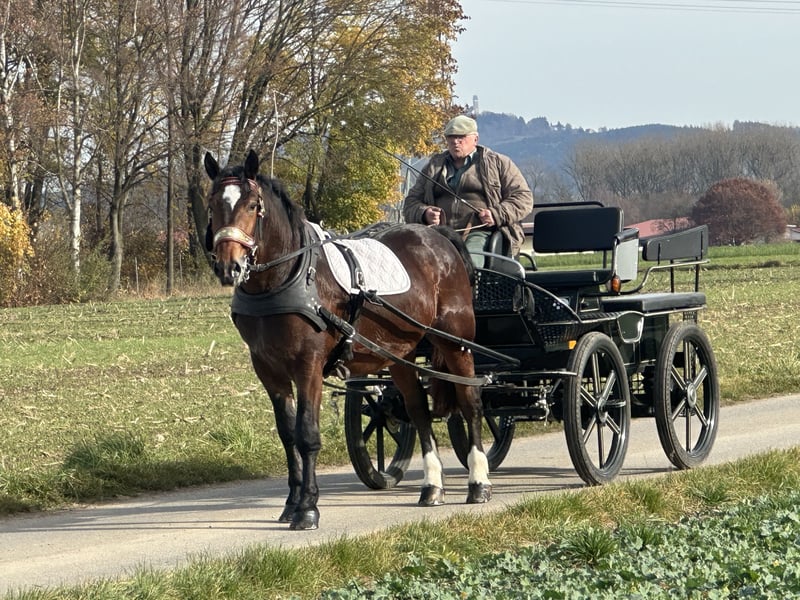 Hier sehen Sie einen Wallach der ein ,- zweispännig gefahren sowie im Gelände angeritten ist
