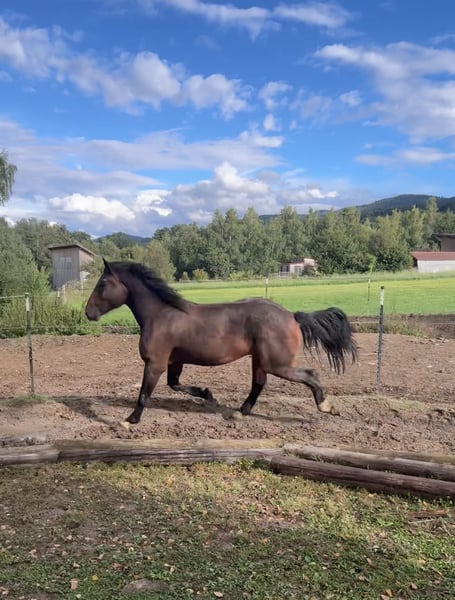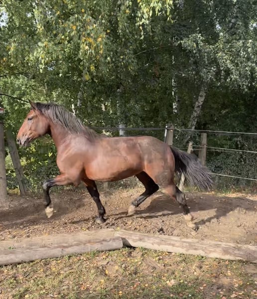 Zum Verkauf steht ein brauner Süddeutscher Kaltblut Wallach, geboren 2023. Mit einem aktuellen Stockmaß von 173 cm. Nähere Infos unter 01713024684