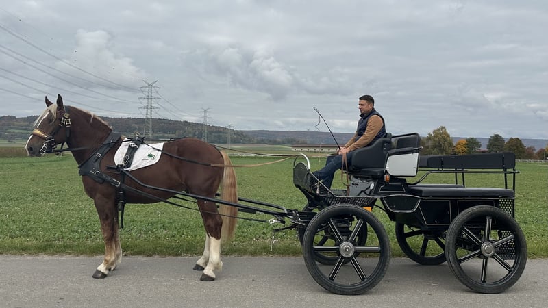 Hier sehen Sie einen Wallach der ein bis achtspännig gefahren ist , er kennt Umzüge sowie Prozessionen und zeigt sich dabei immer super gelassen und brav. Momentan ist er vorne beschlagen und steht in einer gemischten Herde 24 Std auf der Koppel.