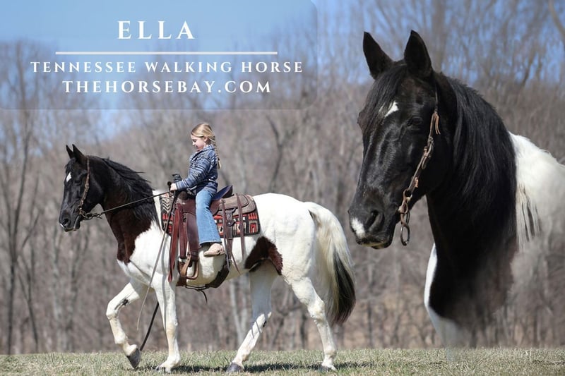 OPEN BIDDING ON THEHORSEBAY,COM. SALE ENDS ON 03/26. More information is available on the website, including an UTD vet inspection, Coggins, video, images, and the owner's contact information to ask questions, request information, or make arrangements to come to visit. If you are looking for a 100% safe horse that the whole family, from baby girl to grandma, can easily ride and enjoy, you have just found her! Ella is the perfect horse for any new rider and the ideal horse to learn on, as she will build your confidence. Ella stands around 15.2h and is a beautiful black tobiano mare. Ella has been ridden throughout Big South Fork in TN, and she knows all about those rough, rocky trails and how to handle herself. Our 6-year-old daughter has trail-ridden her lots of miles without a single issue! Ella will confidently lead the crew or ride peacefully in the back of the crowd. She will go up or down steep slopes, across deep creeks, over downed trees, and all rough terrain while still being sure-footed. She has been ridden in traffic and is very traffic-safe around cars, semis, logs, and dump trucks. If you need a smooth ride that won’t hurt your back??? Ella is the total package as not only does she have the looks, but she also has all the right moves! Ella has that smooth 4-gait that is comfortable for hours in the saddle, and your back and bottom will thank you! She does excellent out in the pasture with our mixed herd. She is super quiet when handling, washing, grooming, tacking up, and loading easily. She also has a great attitude about whatever she is asked to do.