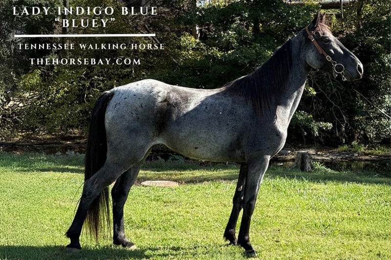 Check out Lady Indigo Blue “Bluey” I’ve never owned what I call the perfect horse, but she is as close as it comes. She has the best personality of any horse I’ve ever owned. She loves kids and attention. She loads clips bathes and stands for the farrier perfectly. She also pastures great with other horses; she’ll be the first one to meet you at the gate. She also rides like a dream. She loves the trails in the woods and water. No hill is too steep or water too deep and is very sure footed. She’s been exposed to just about everything you can think of, and nothing spooks her. She’s the perfect size, age and color. You don’t have to look any further for your dream horse. Feel free to contact me with any questions.