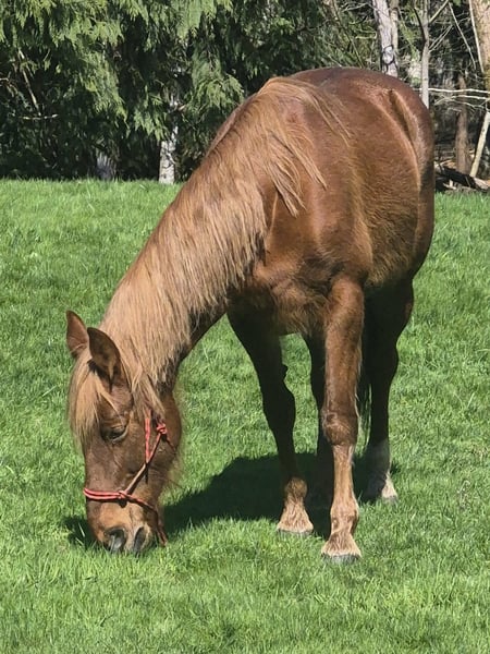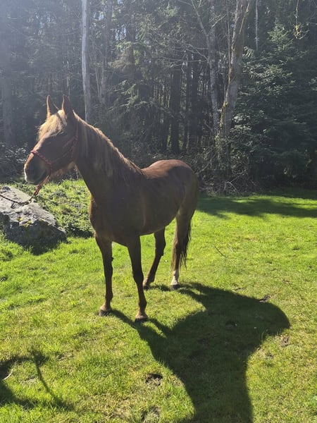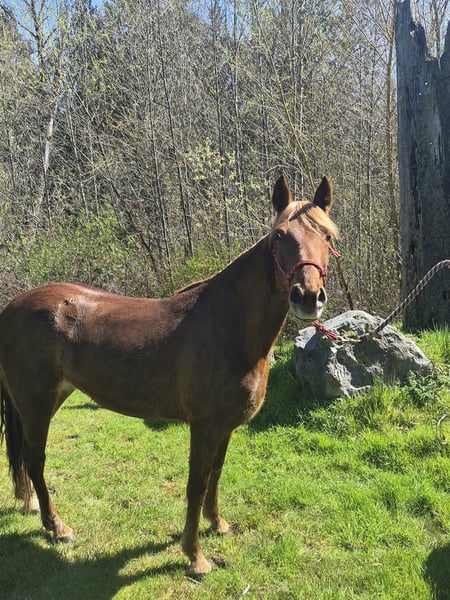 Meet Daisy - a striking 15.3 H Tennessee Walker mare. She boasts a beautiful, refined head, strong conformation, and excellent bone and feet. Daisy stands 15.3 H and shines with a beautiful chestnut color and flaxen mane and tail – her unique coloring and flashy movement never go unnoticed. Daisy is sound, healthy, and exceptionally well cared for. She is up-to-date on all vet care, including vaccinations, dental floating, deworming, and farrier work. She stands well for the farrier and is easy to handle on the ground. Under saddle, Daisy has a smooth 4-beat gait with a 12” overreach and a strong, forward walk. She has had 10 months of professional training and 2 years of diverse trail experience across the mountain trails of Washington state. She is very sure-footed, loves to move out, and excels with riders who understand gaited horses.This lady is as gentle as they come. She would be great for starting 4-H or show with minimal effort. She’s never been in foal but shows great promise as she has cared for other foals on the property. Kid and beginner friendly.