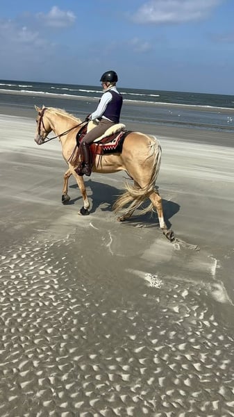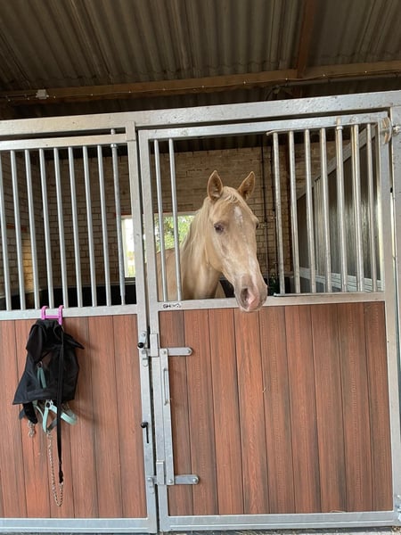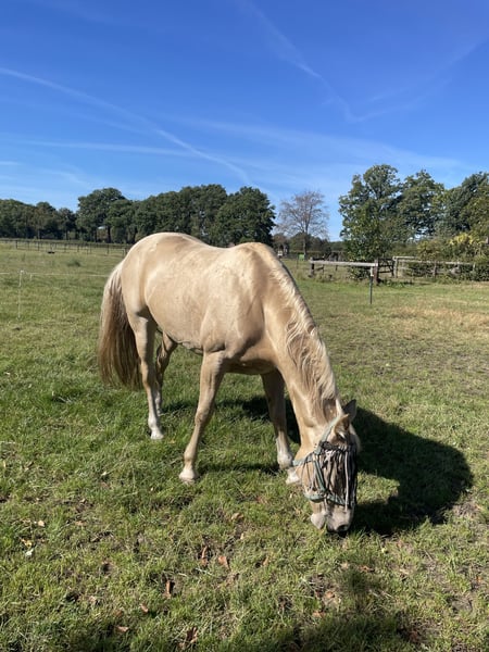 Auf der Suche nach einem neuen Zuhause für diese wunderschöne und liebevolle Stute, Goldy. Sie ist ein echter Blickfang mit ihrer prächtigen Gold-Champagne-Farbe und besitzt zudem ein Herz aus Gold! Sie wurde von ihren früheren und aktuellen Besitzerinnen viel draußen geritten, sowohl in großen als auch in kleinen Gruppen, und das macht ihr auch am meisten Spaß. Allein nach draußen zu gehen, findet sie noch etwas spannend, aber mit einem Reiter, der sie dabei begleitet, wird das sicherlich immer besser. Derzeit steht sie bei mir (BlueGrass Walkers) in Ausbildung, um ihre Gangart (Schritt und Galopp) weiter zu verbessern, was sie sehr gut aufnimmt. Sie ist eine kluge Dame, daher muss man konsequent mit ihr sein, sonst wird sie manchmal lieber faul als fleißig ;) Aber in ihr steckt kein bisschen Bösartigkeit, für eine Leckerei macht sie alles! Impfungen, Wurmkuren, Hufschmied und Zahnkontrolle werden regelmäßig durchgeführt. Sie ist im Umgang sehr brav, beim Schmied sowie beim Verladen in den Hänger oder auf den Wagen. Bei weiteren Fragen stehe ich gern zur Verfügung (NL, EN & DE), Videos auf Anfrage.