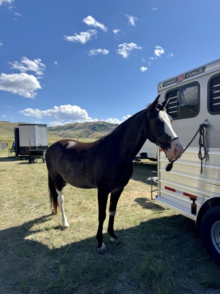 Not only is this horse as smooth and pretty as they come, but he is sweet as pie. He would love nothing more than to be someone’s main ride and companion and thrives when being ridden consistently. Ivar is always willing and ready - you won’t have to catch this one in the open pasture, he’ll catch you. He’s the puppy dog type and loves a good snuggle session. He’s an easy keeper, stands peacefully for the farrier and to be groomed, saddled and bathed. He’s a perfect gentleman on the ground and loads with ease like the sophisticated traveler he is. This one’s special and I could talk about him all day, feel free to call Courtney Maddux {406.250.9530} with any questions. Registered with Smokey Valley, previously named Shelby! Sound and straight legged - PPE available at buyer’s expense. Located in Norris, MT but can help arrange shipping nationwide.