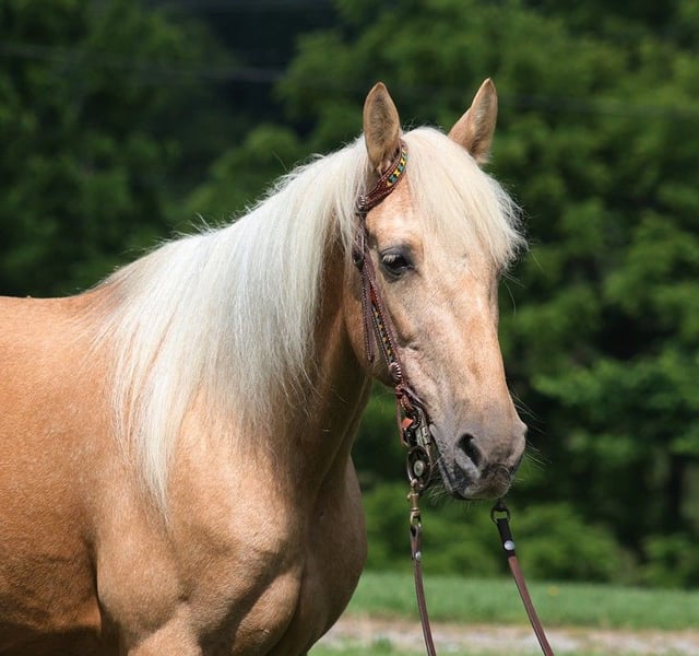 ONLINE AUCTION Place your bids at www.PlatinumEquineAuction.com Starting Bid $3500 Auction ends June 23rd, 2024 Need a new saddle? Check out White Rock Saddles on our website or Facebook! OH WOW… talk about one classy looking lady that checks every box on the score sheet!!! She has the looks, the gait, the mind and the experience!!! Her name is Karma and she is one of those good things that you have been waiting for! Karma stands around 14.2hh and she is 11 years old and she has done it all and seen it all! From the Smoky Mountains of TN to the Blue Ridge Mountains of North Carolina, Karma knows all about those rough rocky trails and knows how to handle herself. She will go up or down even the steepest slopes, across deep creeks, over downed trees, and over all types of rough terrain while still being sure footed. She has been rode in traffic, and is very traffic safe around cars, semi, log, and dump trucks. If you need a smooth ride that won’t hurt your back??? Then look no further! They come no smoother gaited than Karma! She has that true 4-beat gait that is comfortable for hours in the saddle and you back and your bottom will thank you! Karma is the ultimate trail horse, saddle bags, highline ties, of course she hauls and loads easily. She does great out in the pasture with our mixed herd. She has a great attitude about whatever she is asked to do. Feel free to call Korey Patrick 606-310-2428 with any questions. Located in Parkers Lake, KY. ONLINE AUCTION Place your bids at www.PlatinumEquineAuction.com Starting Bid $3500 Auction ends June 23rd, 2024 Need a new saddle? Check out White Rock Saddles on our website or Facebook!