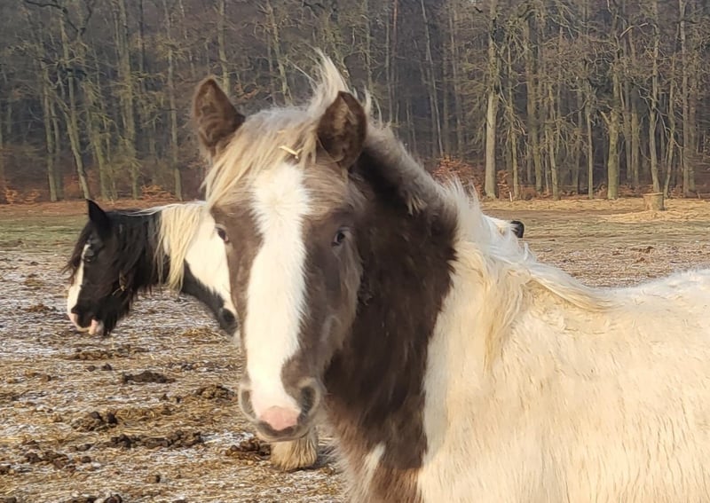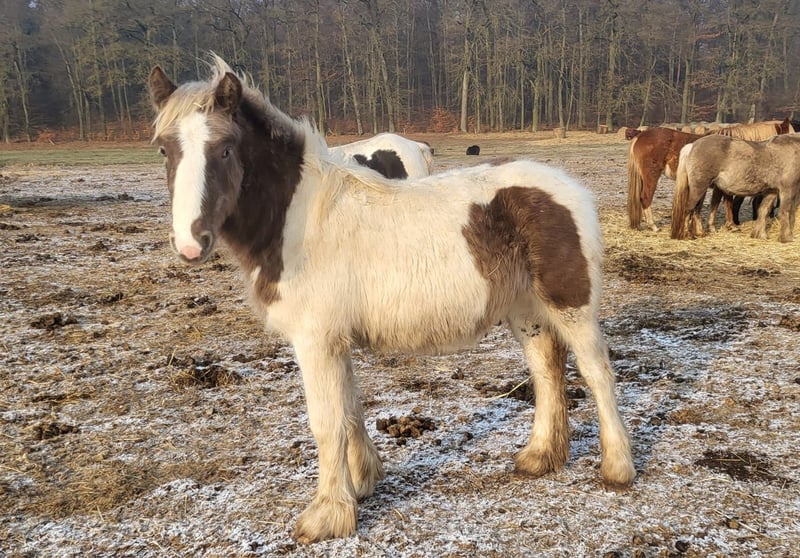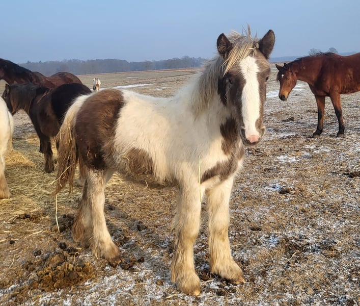 Top Irish Cob Hengst jährling sucht seinen Menschen. Charlottenhofs Nevihta ist ein sehr typvolles, im kräftigen alten Schlag stehender Hengst. Er wird schön groß- um die 150 cm. Seine tolle sehr seltene Sonderfarbe Black Silverdapple mit Lp (Tiegerschecke) ist eine echte Augenweide. Geb 3/25 EM ca 150 cm Er hat eine 1. Fohlenprämie erhalten