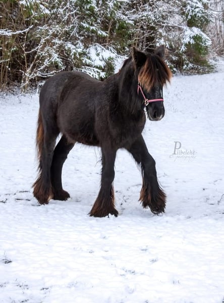 Meet this handsome young colt, born in September 2024, expected to grow to around 155 cm / 15hh. From day one, he’s shown a gentle and curious nature – a truly easy-going companion in every way. Born in September 2024, expected to mature around 155 cm / 15hh. 🐴✨ Arthur stands 13 hh/ 135cm as an 13 month old. This lovely boy has a very friendly and easy temperament, making him a pleasure to handle and work with. ✅ Health & Care: PSSM n/n; G/n (additional genetic tests available on request) DNA verified breeding, recorded in an Irish Cob Passport (FSIC ry) Healthy, vaccinated, dewormed, and regularly trimmed He is well-handled, can live both in a stable or electric-fenced paddock without issues. If you’re looking for a kind-hearted young colt with great potential, he’s the one! Located in Estonia, with transport available worldwide.