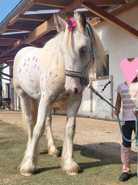 Szukamy dla naszego klaczy Tinker Fridolina (ur. maj 2024) najlepszego domu. Nie jest to konieczna sprzedaż i będzie sprzedany wyłącznie w najlepsze ręce. Jest bardzo przyjazny i absolutnie bezproblemowy w obsłudze. Zna już wszystko, co powinien znać roczniak: wsiadanie do przyczepy, podawanie kopyt, współpracę z kowalem, czyszczenie, spacerowanie – nic nie stanowi dla niego problemu. Przybiega z pastwiska na wołanie. Potrafi również odłączyć się od stada i jest bardzo ciekawskim, łagodnym małym koniem. Jest przez nas czesany, malowany i uczestniczy w różnych zabawach, także przez moją 6-letnią córkę. Fridolin urodził się w naszym wolnym boksie i zna psy, koty, dzieci, traktory oraz wszystko, co wiąże się z życiem na gospodarstwie. Jego wyjątkowy kolor, piękna sierść oraz uroczy charakter czynią go prawdziwym koniem marzeń. Jego matka to 100% pewniak, odważna, nieustraszona i gotowa na wszystko. Ojcem jest znany ogier z Holandii, Legend of Heavenlysmile, który jeźdzony jest także przez małe dzieci i jest absolutnie spokojny. Matka ma 138 cm, ojciec 162 cm, więc przewidujemy końca wzrostu na około 150 cm. Ma więc duży potencjał, by stać się idealnym koniem rekreacyjnym.