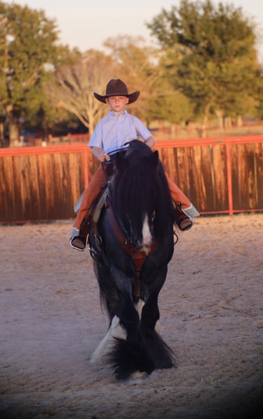🎲WYBÓR JEŹDŹCA🎲 Obecnie do poniedziałku | 17 LISTOPADA - dostępny WYŁĄCZNIE na stronie HorseBid! Więcej szczegółów i rejestracja na stronie: www.Horsebid.com KONTAKT DO SPRZEDAJĄCEGO: BLC RANCH 972-249-5425 LOKALIZACJA: Grand Saline, Teksas RASA: Gypsy ZAREJESTROWANY: Tak NAZWA REJESTRACYJNA: Topaz KOLOR: Blue roan WZROST: 14,3 hh WIEK: 6 lat PŁEĆ: Stangret (ogier) Poznaj Topaza Topaz to wyjątkowy ogier, który robi wrażenie i przyciąga spojrzenia wszędzie, gdzie się pojawi. Zarejestrowany w GVHS (Gypsy Vanner Horse Society) oraz IGEA (International Gypsy Equine Association). Jego piękny niebieski roan i białe skarpetki sprawiają, że nie znajdziesz drugiego takiego konia. Jego usposobienie i osobowość czynią go ulubieńcem wszystkich. Topaz przeszedł już wszystko. Nie tylko jest wytrenowany do kładzenia się i siedzenia na komendę, jak pies, ale także ma rozbudowane szkolenie w zakresie jazdy w siodle i zaprzęgu, co czyni go koniem niezwykle wszechstronnym. Gwarantuję, że nie jeździłeś jeszcze płynniejszym gypsy. Jego chód jest nieskazitelny, a jazda tak gładka jak bujająca się na krześle, z jednym sygnałem stopy wprowadza go w galop, kończąc zatrzymaniem z komendą „whoa”. Topaz zna oba swoje wzdłużki, reaguje na sygnały od nóg, potrafi obrócić się w obu kierunkach jak ćwierćkoń.