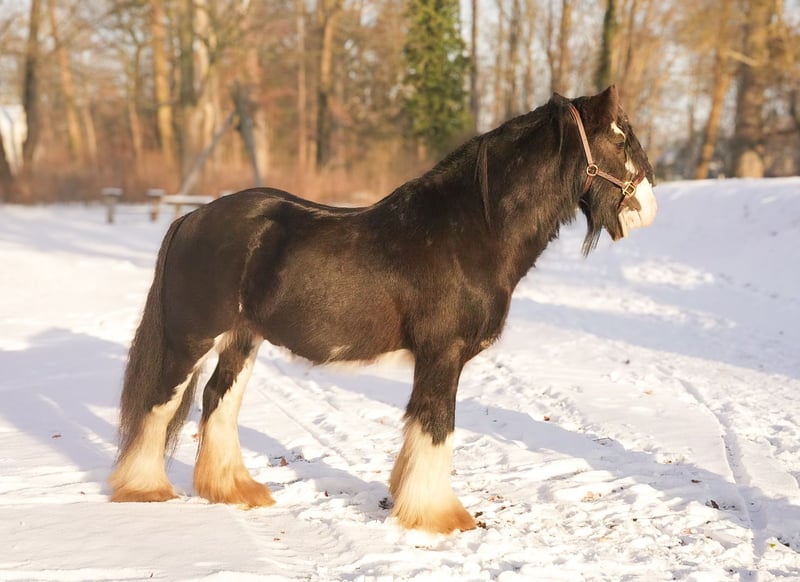 Meg‘s Crow 🍀 – gekörter Irish Cob Hengst mit besonderer Ausstrahlung Mit Meg‘s Crow präsentiert sich ein 5-jähriger, gekörter Irish Cob Hengst mit beeindruckender Präsenz und hervorragenden Eigenschaften. Mit vollen Papieren ist er sowohl beim ICS Nederland als auch beim Verband der Pferdezüchter Mecklenburg-Vorpommern zugelassen. Geboren am 20.06.2021, von Lemmy aus der Pebbles vereint er eine interessante und leistungsgeprägte Abstammung mit großer Qualität. Über seinen Muttervater führt er bewährte irische Leistungsblutlinien, die für Typ, Charakterstärke und Vielseitigkeit bekannt sind. Meg‘s Crow besticht nicht nur durch sein ausdrucksstarkes Erscheinungsbild, sondern vor allem durch seinen außergewöhnlich positiven Charakter. Er ist selbstbewusst, sehr menschenbezogen und stets freundlich im Umgang. Seine ehrgeizige, ausgeglichene und kinderliebe Art macht ihn zu einem verlässlichen Partner, der jeden Tag Freude bereitet. Er wird aktuell in der Dressur und im Springen gearbeitet und konnte bereits Turniererfahrung sammeln. Meg‘s Crow ist ein Hengst, der mit seiner Ausstrahlung, seinem Charakter und seiner Vielseitigkeit begeistert und sowohl für Zucht als auch für Sport und Freizeit keine Wünsche offen lässt. Er ist PSSM negativ Und deckt im Natursprung Bei weiteren Fragen stehen wir Ihnen gerne zur Verfügung 01627373048