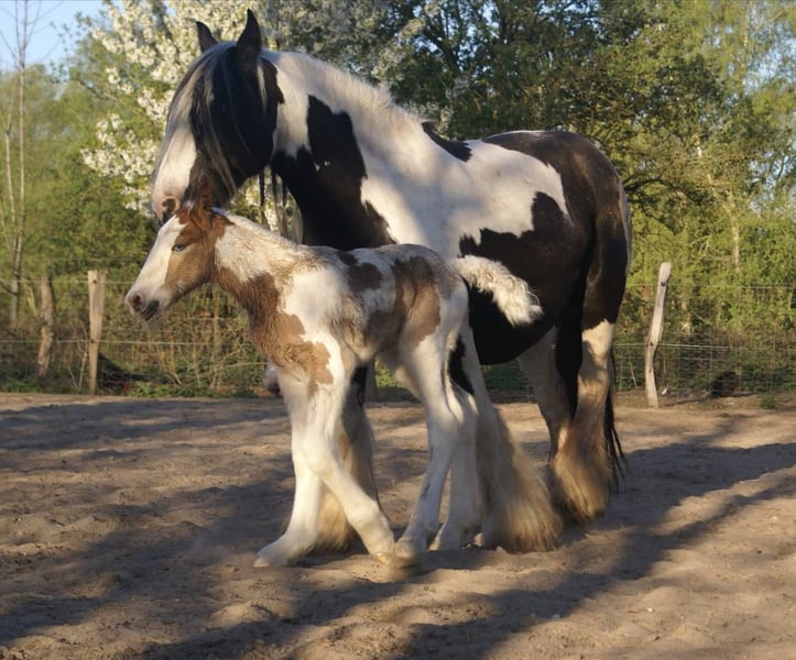 Unser Hengst *Ostfriesland's Chocolate Chips* steht ab Mai wieder einigen gesunden Stuten zur Verfügung. Er ist eingetragen und gekört ins HB1 der Irish Cob Society Nederland, und besitzt 3 Generationen gute Abstammung. Seine Nachkommen sind bereits hoch prämiert. Chips ist typvoll gebaut, hat ein fleißiges Wesen und ist für einen Hengst sehr unkompliziert im Umgang. Er ist reinerbig für Schwarz (es fallen keine Füchse) , vererbt sein schönes Wildbraun und zu 50% ein Tigergen. Mit gescheckten Stuten hat er schon wunderschöne Pintaloosa-Fohlen gebracht, aber auch Einfarbige sind möglich. Mit seinen 1,48m passt er zu Ponystuten, als auch Kleinpferden. Seiner Nachzucht gibt er etwas mehr an Größe mit. Ebenso ist er Pssm1 frei getestet und hat kein Problem mit Mauke. Bei Fragen rufen Sie mich gern an. Die Fotos zeigen einige seiner Fohlen, seinen Vater Camaro und seine Mutter Princess.
