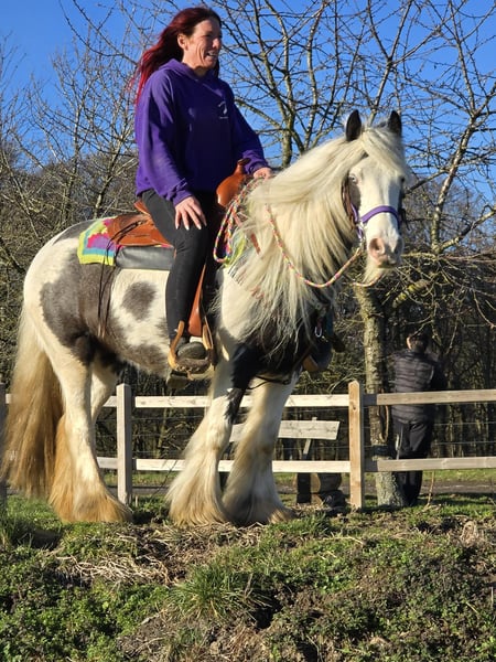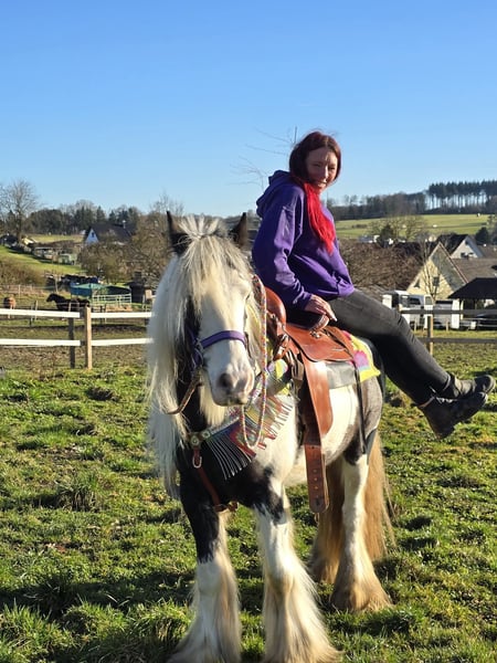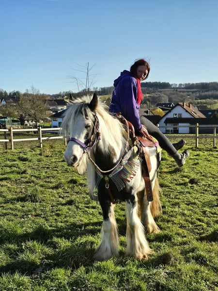 Tolle Tinkerstute Therapie geeignet kennt Kinder , Freizeitstute – brav & zuverlässig DOTTY ein kräftiges Kleinpferd Alter: 11 Jahre geb. 2015 , Stockmaß: ca. 1,40 Preis:4500 AKU: vorhanden ✨ Beschreibung: Diese tolle Stute überzeugt durch ihr ausgeglichenes, freundliches Wesen und ihre ruhige Art. Im täglichen Umgang zeigt sie sich brav, menschenbezogen und unkompliziert. Putzen, Führen sowie der allgemeine Stallalltag sind problemlos und angenehm. Unter dem Sattel ist sie rittig und vermittelt ein gutes Reitgefühl. Besonders im Gelände zeigt sie sich gelassen und zuverlässig. Sie geht entspannt ins Gelände, auch für längere Ausritte gut geeignet. Auf dem Reitplatz arbeitet sie motiviert. Durch ihre angenehme Art ist sie eine ideale Partnerin für den Freizeitbereich. Geeignet für: Freizeitreiterinnen und Freizeitreiter, die eine brave, geländesichere Stute suchen. Auch passend für entspannte Ausritte, leichte Platzarbeit und Wiedereinsteiger, die Wert auf ein ehrliches Pferd legen. Unsere Pferde werden regelmäßig: – entwurmt – vom Schmied betreut – osteopathisch kontrolliert Hofladen: Westernsättel, Trensen & Zubehör Transport und Equipment auf Wunsch günstig organisierbar Unser Service: ✅ 3 Monate Umtauschrecht ✅ Proberitt: 35 €, jedes weitere Pferd 25 € (beim Kauf am selben Tag angerechnet) ✅ 100 € Sofort-Rabatt bei Abholung oder Transport am gleichen Tag ✅ Persönliche & ehrliche Beratung Anfragen bitte ausschließlich telefonisch: 0171 – 4001968 Erreichbar täglich von 8–20 Uhr ⚠️ Keine E-Mail oder WhatsApp ⚠️ Alle Angaben ohne Gewähr