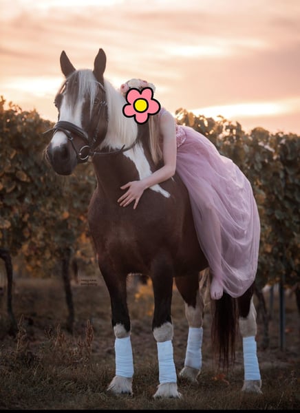 Sehr schweren Herzens müssen wir uns leider wegen privaten Veränderungen von unserer Sport-Tinker-Mix (Irish Sport Horse)Ponystute trennen. Wir haben sie im Dezember 2017 ende 2jährig gekauft (sie kam direkt aus Irland wo sie geboren wurde) und seither war sie nur in unserem Besitz. Wir haben sie ersteinmal wachsen lassen und dann behutsam und über langem Zeitraum über Bodenarbeit angelernt. Als sie soweit war haben wir selbst angefangen einzureiten, wobei sie sich immer lernwillig und lieb gezeigt hat. Als die "Basics" soweit gesessen haben, haben wir sie umgestellt damit sie, zusammen mit mit meiner Tochter, über private Reitstunden weiter über Trainer ausgebildet werden konnte. Mittlerweile ist sie auf einem sehr guten E-Niveau (über Winter und wegen Zeitmangel hatte sie jetzt Pause) und lief 3 Jahre auch auf diversen Tunieren mit (Rwb ST, Rwb STG, Dressurreiter-Wb, Pony-Führügel, Springreiter-Wb, GHP) und wir durften viele Schleifen und 1 Pokal mit ihr sammeln. Sie springt auch gerne, müsste da aber über Training gefördert werden. Ich selbst hatte mit ihr Reitstunden an Longe und Freireiten angeboten, wo sie sich auch immer lieb zeigte. Von daher würde ich sie auch als Familienpony sehen. Wir suchen für sie wirklich ein Bestplatz...sie wird weder an einen Händler gegeben noch für einen reinen Schulbetrieb! Sie sollte auch nicht das ganze Jahr über an jedem Wochenende auf Turniere laufen, wir waren nur immer in einem gewissen Umkreis unterwegs und hatten immer geschaut das es nicht zu viel für sie wird. Sie ist ein wirklich tolles Pony das viele Sachen ganz brav mitmacht. In dem angebotenen Preis wurde folgendes berücksichtigt: Sie hat ein leichtes Sommerekzem (Kriebelmücken), welches wir mit einer UV-Decke und täglichem einreiben mit Seborin/Heilerde über die Sommermonate gut abgedeckt bekommen haben (sie hat es nur an der schwarzen Stelle in der Mähne und am Bauch gejuckt) und sie getreidefreies Müsli bekommt. Zum zweiten hat sie über die Frühjahr/Sommermonate auch mal allergischen Husten, heisst, staubarmes Heu ist ein MUSS und Späne sind von Vorteil. Wir haben sie in der Zeit öfter inhaliert und kamen damit gut hin. Auch ihr komplettes Zubehör wie Sattel, Trense, Decken,...sind in dem Preis mit enthalten. Sie kennt Paddockbox und tagsüber Paddock/nachts Box. Eine Offenstalhaltung haben wir noch nicht gehabt, ich vermute aber in einer grösseren Herde fühlt sie sich nicht allzuwohl, da sie rangniedrig ist und vor allem Nachts ihre Ruhe haben will bzw braucht. Ich denke das waren ersteinmal die wichtigsten Informationen...Fragen dürfen gerne gestellt werden ☺️