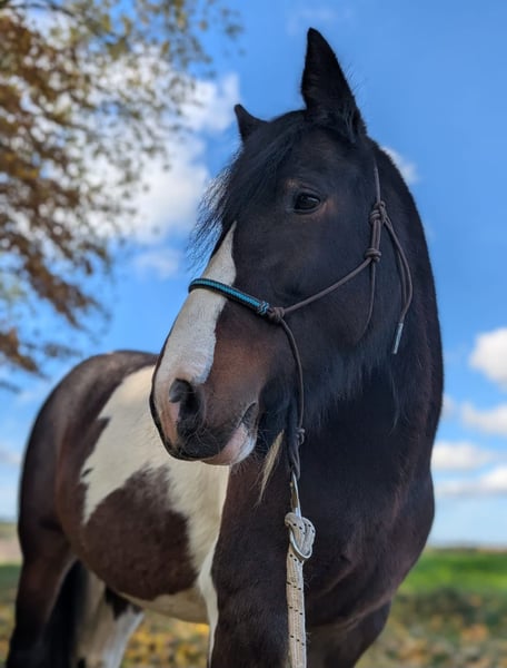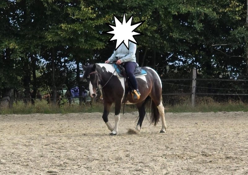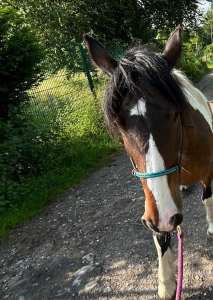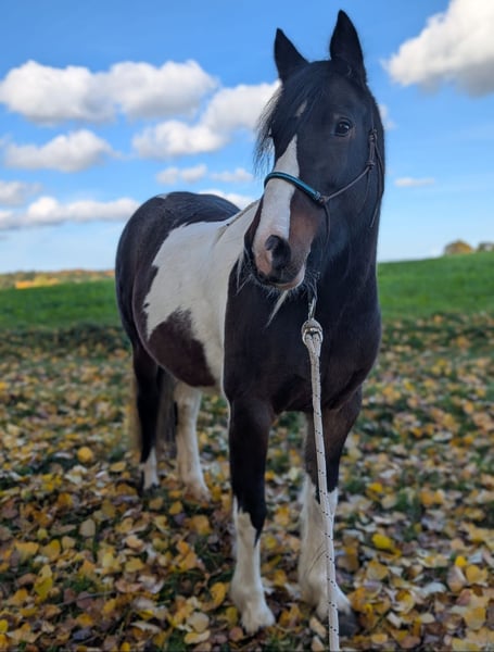 A 10-year-old Tinker mix mare (approximately 14.2 hh) is looking for an experienced horse home. She does not display any malicious or dangerous behavior, does not buck anyone off without reason, and does not go headlong into things. However, she can be stubborn and occasionally questions her surroundings—she may stop or try to "park." With calm, consistent handling, these issues are quickly resolved. This behavior is mostly exhibited in the riding arena. She has been primarily ridden in the field and feels very comfortable there, even riding out alone. She is less suited to traditional arena work but is well-versed and comfortable with ground work. Her riding skills are still a work in progress. She is herd-friendly, accustomed to stable life (with feed management), currently shod but barefoot otherwise. Recently checked by an osteopath. Not suitable as a beginner or children's horse. When on your side, she is loyal and reliable. Suitable for riders aged 14 and older with experience. Since we simply do not harmonize, and my daughter—who was also intended to ride her—has not yet been able to assert herself, we are looking for a wonderful new home. A suitable Western saddle and accessories can be purchased optionally (at an additional cost). Please feel free to contact us with any questions or if you are interested.