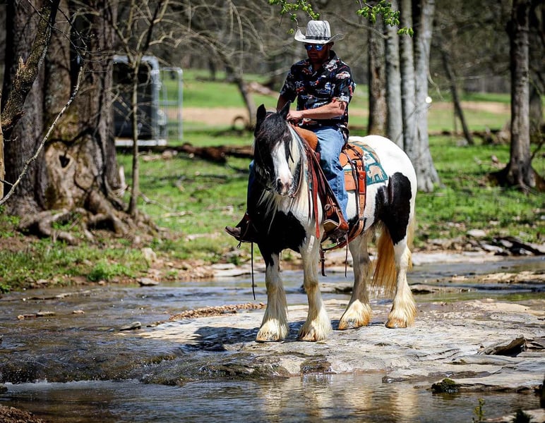 ONLINE AUCTION Place your bids at www.PlatinumEquineAuction.com Starting Bid $3500 Auction ends April 27th, 2025 Need a new saddle? Check out White Rock Saddles on our website or Facebook! Lexlin’s Iceand or better know around the barn as Lexi is an 11yr old, 14.1-14.2h registered Gypsy Vanner mare that checks all of the boxes!!! Lexi has been a barn favorite now for sometime and aims to please in everything she does. Lexi is the true definition of an all around horse that excels in every discipline. From going out in the pasture and letting the little kids play/groom on her to riding the steepest hill and trails Lexi handles it all with a heart of gold and ease. Lexi stands to be saddles, loves to be bathed/groomed, loads with ease and the easiest horse to get along with I have ever seen. We have used her in our lesson program, trail ridden her thousands of miles with all different obstacles, pushed the calves into the sorting pen and everything else imaginable. Lexi has a nice W/T/C, one hand ride, backs with ease, side passes both direction to open any gate and is the easiest to mount you will find. Lexi has been used in multiple photo shoots and even took indoors for a therapeutic pony. If you are looking for a one of a kind Gypsy mare that is suitable for ANY level of rider then Lexi is your gal!!! For more info on Lexi call JT Shouse 931-698-7159 Located in Santa Fe, TN. ONLINE AUCTION Place your bids at www.PlatinumEquineAuction.com Starting Bid $3500 Auction ends April 27th, 2025 Need a new saddle? Check out White Rock Saddles on our website or Facebook!