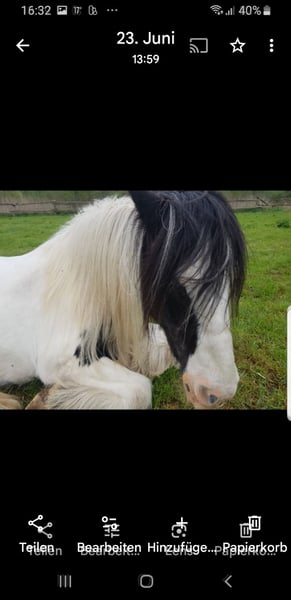 Hallo Ihr lieben im Auftrag. Tinker Stute 17 Jahre. Super hübsche, kinderliebe Tinker Stute. Sie ist 1,50m groß, Zaunsicher, ohne Ekzem und Mauke. Schmied und Tierarzt sind kein Problem. Sie wird regelmäßig entwurmt und ihre Zähne wurden gemacht . Sie wird als reitbarer Beisteller in liebevolle Hände verkauft. Name: Darcys Barbara Geboren: 2008 1700 Vb Standort : Recklinghausen Bitte nur telefonisch melden . Sie erreichen mich jeden Tag unter : 0176 64818606