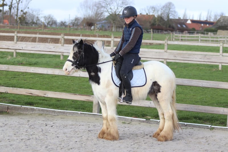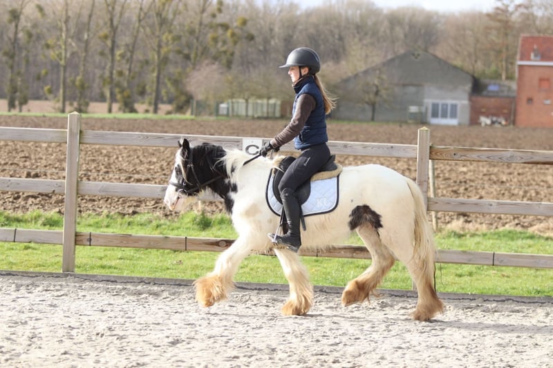 ✨ Petit poney Tinker Elizie ✨ Elizie est une jolie jument de 4 ans avec une taille au garrot de 1,22 m. Elle est douce en société et s’entend très bien avec d’autres poneys. Elle voyage également facilement et sans souci. En dressage, elle maîtrise parfaitement les trois allures, et elle aime aussi participer à des sorties en extérieur. En ville ou face à de nouvelles choses, elle ne se laisse pas facilement impressionner, ce qui fait d’elle un poney agréable et fiable. 📞 Plus d’informations ? 0032475682243 🎥 Pour des vidéos : demandez notre site internet