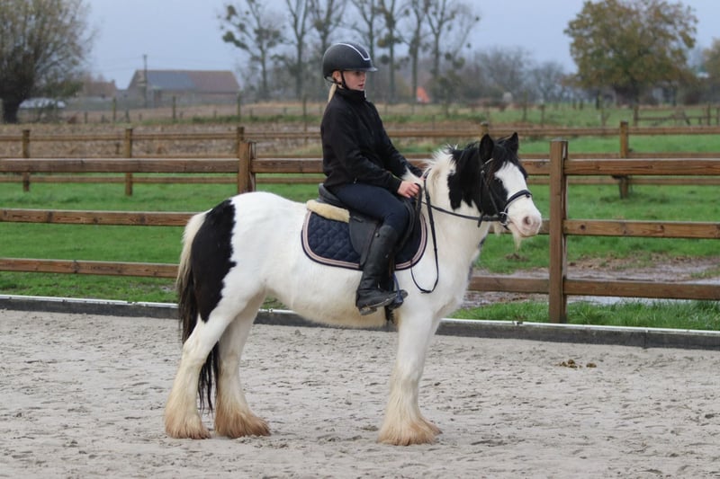 Evie 🌸 Pony femmina di 4 anni molto dolce – altezza 1,26 m Questa splendida giovane femmina non dimostra affatto di avere solo 4 anni. Si muove molto bene e con semplicità nei tre andamenti e salta con grande facilità. Andare a cavallo in esterno non le dà problemi: non è spaventata e si comporta in modo esemplare in strada. Inoltre, Evie è a prova di scivolata – vedi foto e video con la palla – e rimane sempre rilassata e affidabile. Nel rapporto con le persone è una pony incredibilmente dolce e paziente. Si ferma tranquillamente quando si la monta, si lava, si asciuga… Insomma: una vera pony per bambini e famiglie. Va d’accordo con altri pony ed è molto facile da trasportare. Per ulteriori informazioni? 📞 0032 475 68 22 43 I video sono disponibili sul nostro sito web – chiedi pure il link!