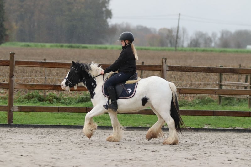 Evie 🌸 Super douce ponette jument de 4 ans – 1,26 m Cette magnifique jeune jument ne donne absolument pas l’impression d’avoir seulement 4 ans. Elle se déplace très proprement et facilement dans les trois allures et saute avec beaucoup d’aisance. Elle monte sans problème en extérieur : elle n’est pas peureuse et se comporte de manière exemplaire en balade. De plus, Evie est ultra fiable – voir les photos et vidéos avec le ballon – et reste toujours détendue et sûre d’elle. En interaction, c’est une ponette incroyablement douce et patiente. Elle reste parfaitement calme lors du pansage, du lavage, du séchage… En résumé : une véritable pony pour enfants et familles. Elle s’entend bien avec d’autres poneys et est très facile à transporter. Plus d’informations ? 📞 0032 475 68 22 43 Les vidéos sont disponibles sur notre site internet – n’hésitez pas à demander le lien !