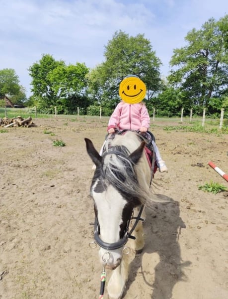 Our mare was born in 2021, stands approximately 144 cm at the withers, and has been lightly backed for leisure riding this year. She was very eager, willing to learn, and gentle during her riding sessions. Due to our personal circumstances, she has not been extensively worked with since around June. She is an ambitious and characterful mare who enjoys and actively seeks grooming and interaction. She is very people-oriented and prefers to be cuddled and fussed over all day long. She loves to jump freely and has jumped quite a bit on her own initiative in recent years, making her a promising beginner’s show jumping pony. She has a passport, is microchipped, and dewormed. Her hooves are trimmed at least every six weeks; the last trim was on Sunday, September 28th. She was very well-behaved during trimming and can be worked on with a grinder.