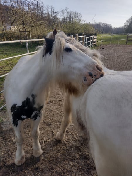 Ich suche für meine beiden jungen Ponys eine zuverlässige, herzliche und offene Person, gerne auch Mutter-Tochter, Vater-Sohn etc. Kombination. Wir sind ein kleiner Selbstversorger-Offenstall und suchen Unterstützung bei den alltäglichen Aufgaben wie abäppeln, füttern, putzen und schmusen. Darüber hinaus freuen sich die beiden über Beschäftigung jeglicher Art. Wir gehen gerne spazieren, erkunden die Wälder und lernen neue Menschen und Tiere kennen. Auch die Wippe ist genau nach ihrem Geschmack. Die Arbeit im Roundpen (Lounge, Doppellonge, Stangenarbeit, Reiten) sind leider in letzter Zeit etwas zu kurz gekommen und müssen (wieder) vertieft werden. Es gibt keine Halle, aber es steht mittlerweile ein Roundpen zur Verfügung. Mir ist besonders der Aufbau einer engen Beziehung am Boden als Voraussetzung für die Arbeit wichtig. Ein fairer Umgang und Kontinuität sind die Grundlage. Wir sind mit dem ÖPNV gut erreichbar. Wir freuen uns über eine Nachricht. Ganz liebe Grüße