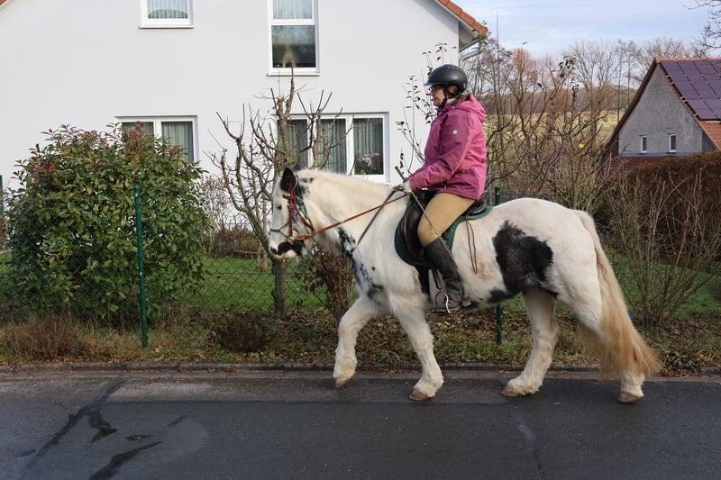 Fiona ist seit 1 Jahr bei uns. Sie freundlich, menschenzugewandt und brav im Umgang. Sie wurde geritten auf dem Platz, im Ort und im Gelände. Wir haben sie longiert, spazieren geführt und Bodenarbeit und Scheutraining gemacht. Sie hat hier zu wenig zu tun. Bei der Vorbesitzerin war sie 3 Jahre, sie hatte sie zum Einreiten in Profiberitt Western nach Parelli gegeben, danach hatte sie bei ihr im Mai 24 ein Fohlen bekommen. Bei ihr wurde sie Tinkerbell gerufen. Fiona (Ballindown six) hat einen irischen Pass (Leisure Horse Ireland), ohne Abstammung, Geburtsdatum 1.1.2018. Sie ist aber laut Tierarzt eher 1 Jahr jünger. Sie lebt bei uns mit einem Highlandpony und zwei Shettys. Deswegen sind Heu und Weidezeit limitiert. Sie passt hier nicht ganz rein, sie bräuchte mehr Platz, grösseres Paddock und Winterweide oder Paddocktrail. Und möglichst keine Shettys in der gleichen Gruppe. Sie ist gesund, IT geimpft, Hufpflege alle 6 Wochen und regelmässig entwurmt. Da sie noch jung ist und noch wenig Reiterfahrung hat, suchen wir für sie einen erfahrenen konsequenten Reiter, sie ist kein Anfängerpony.