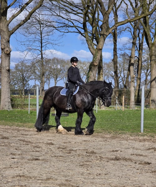 Wij willen onze 9-jarige, 1,52 m grote Tinker merrie verkopen. Lilly is een geweldig recreatiepaard waar je plezier aan kunt beleven. Uitritten, zowel solo als in een groep, vormen geen enkel probleem – ze is vooral in het terrein gereden. Op de rijbaan heeft Lilly wat motivatie en afwisseling nodig tijdens het werk. Ze kent ook grondwerk (beginnen met klassieke handwerk) en circustrucs. In haar huisvesting en voeding is ze makkelijk in de omgang. Wij kennen geen gezondheidsproblemen. Geïmmuniseerd (Tetanus & Influenza) Regelmatig ontwormd (tot 03/2026) Regelmatige hoefverzorging Eén keer per jaar gebitscontrole (10/2025) Osteopathische behandeling (11/2025)