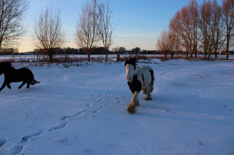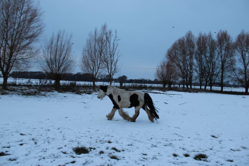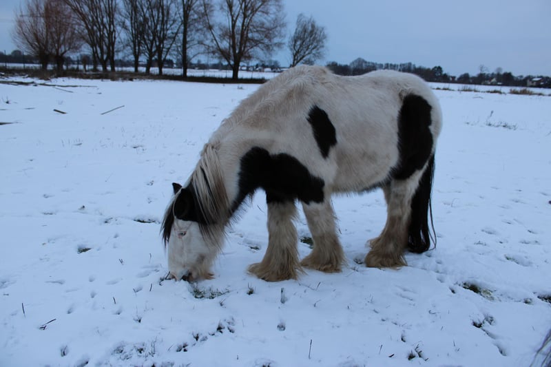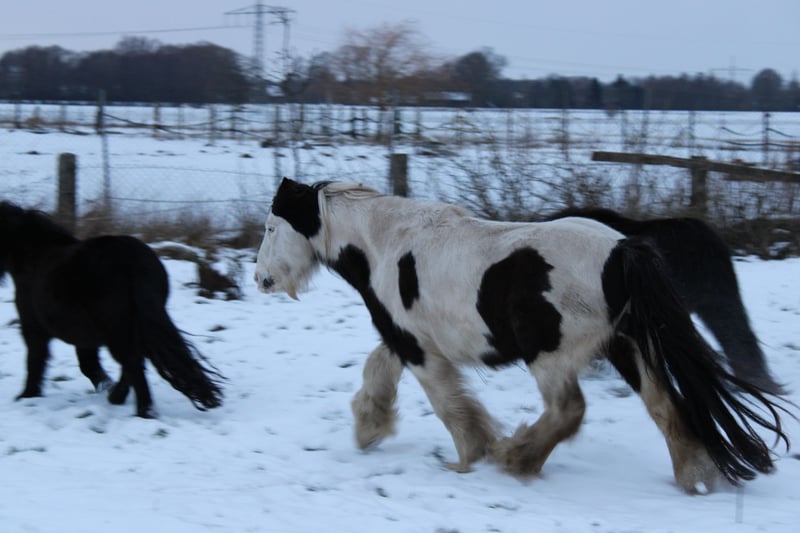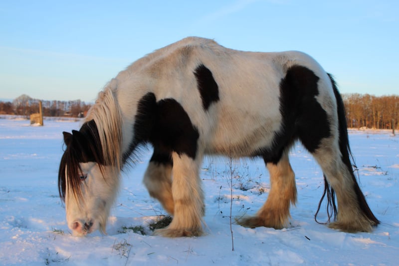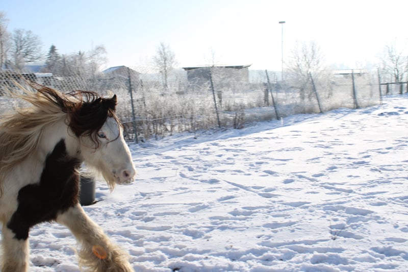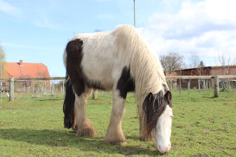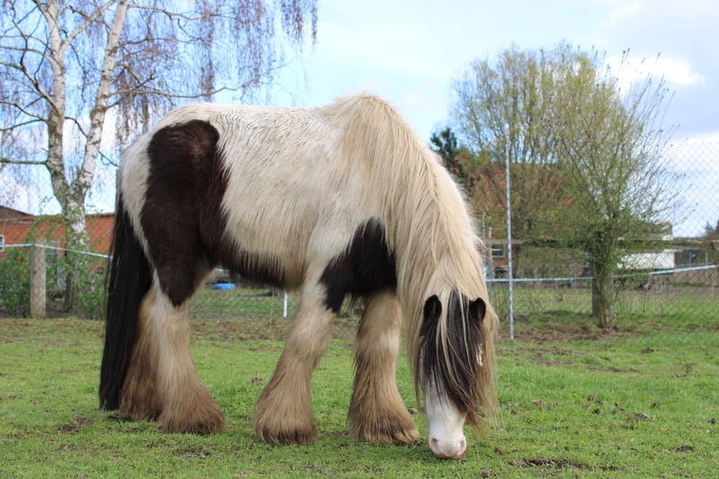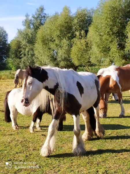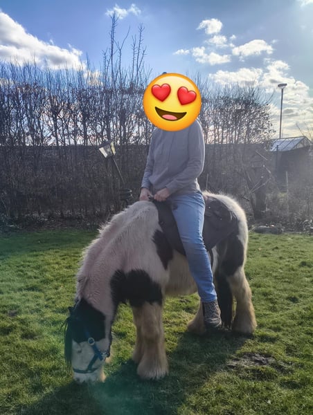 With a heavy heart, we are selling our George. Little Prince "George" has been with us since he was about six months old. He was born in England and came to us via a Dutch horse market. Here, he grew up with a peer stallion, older geldings, and mares of all sizes. Since foalhood, he has never had any bad experiences and has never been ill. He is kept at the house in an open stable with a paddock, and in summer, he grazes on a wooded pasture in a herd. He is also familiar with box stall housing (from very cold winter periods and holidays). Three years ago, George was backed at Reiners Riding Stable and was used by children for trail riding with a saddle. He is very well-behaved with children and in handling, but since then, he has only been kept as a companion on the pasture here, as he was originally intended for our own training. He has been on holiday, swimming in lakes, used as a lead pony for rides, and even accompanied us to the ice cream shop... He loves to roll in shallow water, scratch himself, or take a bath. He is a dream pony. He has always been cheerful, friendly, and gentle here, and is easy to handle for the farrier and loading. He is also fence-safe (even on the move, in the paddock with low electric fencing). His calm demeanor provides security and makes him suitable for children or therapeutic riding. Due to my daughter's studies and some health issues of our own, we unfortunately have to give up our entire horsekeeping, which is why we have decided to sell him. Throughout the years, he has never been sick or lame. He has no history of colic, unexplained lameness, founder, or eczema. His coat was once completely shaved due to autumn mite infestation. Otherwise, he has had no issues with his thick mane, tail, or leg hair. His charming little mustache in winter and his beautiful eyes are especially notable. We are looking for a permanent, loving home for this heart horse. We also have a small pony cart and a set of light harness available, which can be purchased if interested. (Pre-purchase examination available upon request and at the buyer’s expense. Due to his training level, trial riding is not possible.) The sale is due to giving up horsekeeping. Details: Breed: Tinker Gelding Approx. 1.28 m (13.2 hh) Born November 2016 – still 9 years old Thick leg hair Long mane and tail Blue eyes Pass available – no pedigree Backed three years ago for trail riding and on the arena – needs re-education The pictured Norwegian and the piebald Shetland are also looking for a home and are listed separately. For more information, additional pictures, videos, etc., please contact 0157-55791316.