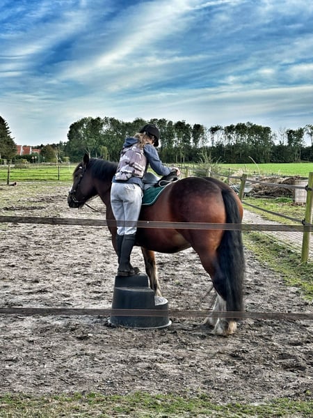 Te koop: eerste premie Tinker / Irish Cob — lieve ruin met karakter Voor onze prachtige ruin zoeken wij een blijvend en passend thuis. Gegevens • Geboren: 13 april 2014 • Geslacht: ruin • Stokmaat: ca. 163 cm • Met papieren — eerste premie Tinker / Irish Cob • Vader: Majestic Shirrdan • Moeder: Shaolin Karakter Een grote, indrukwekkende Tinker met een eerlijk en heel vriendelijk karakter. Hij is nieuwsgierig, komt altijd direct naar je toe voor aandacht en vindt kriebelen, borstelen en contact met mensen heerlijk. Een lief paard zonder kwaad in zich, met een klein beetje branie. Tegelijk is hij een typische Tinker: erg slim en soms wat eigenwijs. Hij heeft rustige, consequente leiding nodig en probeert soms zijn eigen plan te trekken als de ruiter niet duidelijk is. Dat uit zich niet in bokken of iemand eraf gooien (dat heeft hij nog nooit gedaan) maar eerder in wat doorduwen of eigen keuzes maken (na drie/vier rondjes in de bak stop ik er even mee want ja, ik heb het vermoeden dat ik al een beetje moe word, of: jij wou naar links, maar ik wou graag naar rechts…). Met een zachte maar duidelijke, vooral consequente hand is hij juist een heel fijn paard om mee te werken. Daarom wellicht wel wat minder geschikt voor een beginnende ruiter. Opleiding en rijden Ondanks zijn formaat willen wij hem liever niet als rijpaard zien als je boven de 90 kg bent. Hij is beleerd volgens de Parelli-methode en is zowel bitloos als met bit gereden. Is dus ook getraind in grondwerk. Omdat hij wat sterk was voor onze dochter die nog jong was toen zij hem begon te rijden, hebben wij destijds samen met onze Parelli-instructrice gekozen voor rijden met bit. Het gebruik van een zweep en/of sporen zijn wat ons betreft een no go. Geschikt voor: • rijden in de bak • buitenritten, het liefst samen met een ander paard, hij blijft graag bij zijn kudde • grondwerk Hij is niet verkeersbang en kent tractoren en vrachtverkeer. Achtergrond Wij kochten hem destijds voor onze dochter toen zij 11 jaar oud was. Inmiddels zit zij straks in haar eindexamenjaar en heeft door school en andere interesses geen tijd meer voor hem. Dat vinden wij zonde, hij verdient een plek waar hij weer de aandacht krijgt die hij nodig heeft. Huisvesting Hij staat nu in een paddock paradise systeem: • 24/7 buiten met schuilstal in de buurt van Bellingwolde (provincie Groningen) • samen met twee andere ruinen • veel ruimte om te bewegen en natuurlijk gedrag te vertonen Hij probeert soms de baas te spelen, loopt ook graag voorop, maar wordt door zijn kuddegenoten netjes op zijn plek gezet en dat accepteert hij prima. Wij zoeken nadrukkelijk een vergelijkbare plek voor hem: 24/7 buiten in een kudde (dus niet alleen), met schuilstal en ruimte om te bewegen, of in de nacht op stal (het liefst open voor contact met andere paarden) en overdag buiten. Een plek waar hij op een afgesloten stal komt te staan, of waar paarden maar een paar uur per dag naar buiten mogen, vinden wij voor hem geen goede match. Gezondheid en verzorging • algemeen gezond • destijds klinisch gekeurd bij aankoop • gebit en gezondheid jaarlijks gecontroleerd door de dierenarts • wordt elke 8 weken bekapt Wij zoeken een blijvende, liefdevolle plek waar hij de aandacht krijgt die hij verdient. Of dat nu een plek is waar hobbymatig mee gereden wordt, alleen grondwerk gedaan wordt, of waar hij vooral een fijn maatje is. • handelaren hoeven niet te reageren • bij verkoop willen wij recht van terugkoop als hij ooit weg zou moeten • wij hebben geen haast en nemen alle tijd om een goede match te vinden de prijs is inclusief alle toebehoren: halsters, hoofdstel zadel, dekjes, borstels. Tevens een vliegendeken voor in de zomer. Meer informatie of kennismaken? Neem gerust contact op.